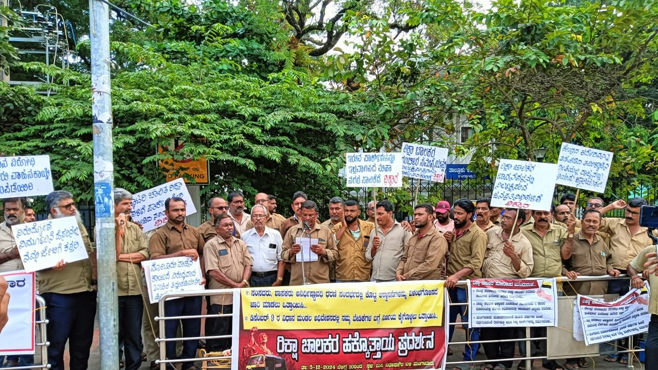 ರಿಕ್ಷಾ ಚಾಲಕರು ವಿಶೇಷವಾಗಿ ಡೋಲು, ಜಾಗಟೆ ಬಾರಿಸಿ, ಪ್ಲೆಕಾರ್ಡ್ಗಳನ್ನು ಹಿಡಿದು ವಿಶಿಷ್ಟವಾಗಿ ಪ್ರತಿಭಟನೆಯಲ್ಲಿ ಪಾಲ್ಗೊಂಡರು.