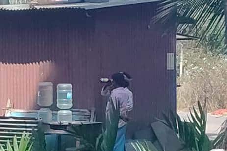 -20HRR.01:ಯಲವಟ್ಟಿ ಮಹಾದ್ವಾರದ ಬಳಿಯ ಜ್ಯೂಸ್–ಎಗ್ ರೈಸ್ ಅಂಗಡಿಯಲ್ಲಿ ಮದ್ಯಪಾನ ದೃಶ್ಯ.