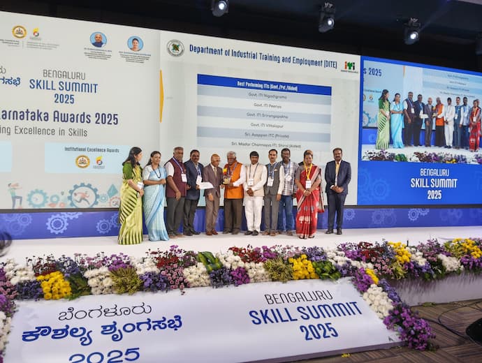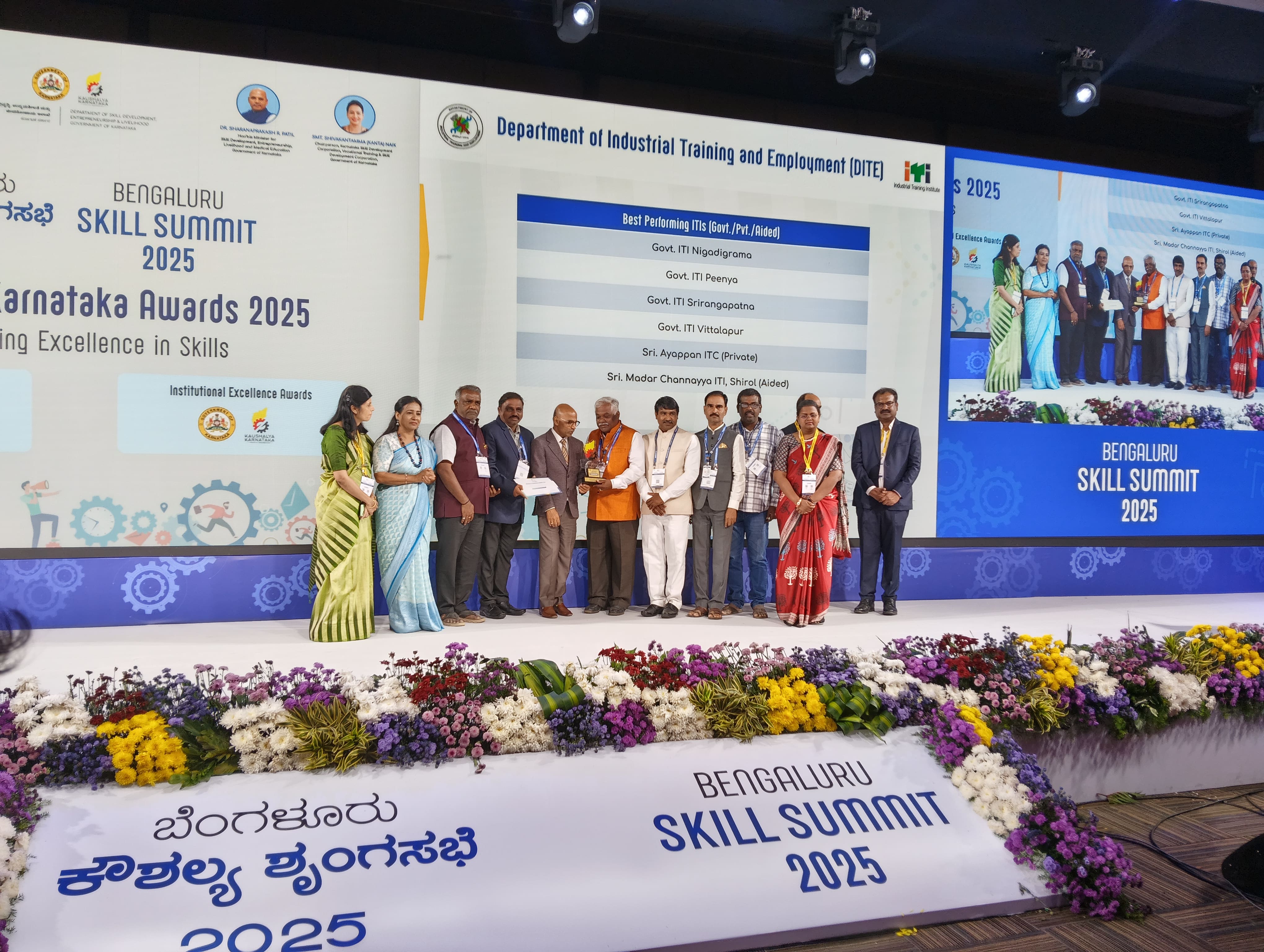 ನರಗುಂದ: ತಾಲೂಕಿನ ಶಿರೋಳದ ತೋಂಟದಾರ್ಯ ವಿದ್ಯಾಪೀಠದ ಮಾದಾರ ಚನ್ನಯ್ಯನ ತರಬೇತಿ ಸಂಸ್ಥೆಯ ಸಾಧನೆ ಗುರುತಿಸಿ ಬೆಸ್ಟ್ ಪರಫಾರ್ಮಿಂಗ್ ಐಟಿಐ ಆಫ್ ಕರ್ನಾಟಕ ಪ್ರಶಸ್ತಿ ಲಭಿಸಿದ್ದು, ಬೆಂಗಳೂರಿನಲ್ಲಿ ಇತ್ತೀಚೆಗೆ ಪ್ರಶಸ್ತಿ ಪ್ರದಾನ ಮಾಡಲಾಯಿತು.ತರಬೇತಿ ಸಂಸ್ಥೆಯ ಕಾರ್ಯ ಸಾಧನೆ ಗುರುತಿಸಿ ರಾಜ್ಯ ಸರ್ಕಾರದ ಕರ್ನಾಟಕ ಕೌಶಲ್ಯ ಅಭಿವೃದ್ಧಿ ನಿಗಮ, ಕರ್ನಾಟಕ ಕೌಶಲ್ಯ ಅಭಿವೃದ್ಧಿ ಪ್ರಾಧಿಕಾರದಿಂದ ಇತ್ತೀಚೆಗೆ ಬೆಂಗಳೂರಿನ ಲಲಿತ ಅಶೋಕ ಹೋಟೆಲ್ನಲ್ಲಿ ಆಯೋಜಿಸಿದ್ದ ಬೆಂಗಳೂರು ಕೌಶಲ್ಯ ಶೃಂಗಸಭೆ- 2025 ಸಮಾರಂಭದಲ್ಲಿ ಸಚಿವ ಶರಣಪ್ರಕಾಶ ಪಾಟೀಲ ಅವರು ಪುರಸ್ಕಾರ ನೀಡಿ ಗೌರವಿಸಿದರು. ಕಾರ್ಯಕ್ರಮದಲ್ಲಿ ಕರ್ನಾಟಕ ಕೌಶಲ್ಯಾಭಿವೃದ್ಧಿ ನಿಗಮದ ಅಧ್ಯಕ್ಷೆ ಶಿವಕಾಂತಮ್ಮ (ಕಾಂತಾ) ನಾಯಕ, ಕೈಗಾರಿಕಾ ತರಬೇತಿ ಮತ್ತು ಉದ್ಯೋಗ ಆಯುಕ್ತರಾದ ಡಾ. ರಾಗಾಪ್ರಿಯ ಆರ್., ರಾಜ್ಯ ಸರ್ಕಾರದ ನಿವೃತ್ತ ಮುಖ್ಯ ಕಾರ್ಯದರ್ಶಿ ವಂದಿತಾ ಶರ್ಮಾ ಇಲಾಖಾ ಅಧಿಕಾರಿಗಳು ಇದ್ದರು.ಭೈರನಹಟ್ಟಿಯ ಶಾಂತಲಿಂಗ ಶ್ರೀಗಳು ಮಾತನಾಡಿ, ಈ ಕೈಗಾರಿಕೆ ಸಂಸ್ಥೆ ಈ ಭಾಗದಲ್ಲಿ ಎತ್ತರ ಮಟ್ಟಕ್ಕೆ ಬೆಳೆಯಬೇಕೆಂದರೆ ಸಿದ್ದಲಿಂಗ ಶ್ರೀಗಳು, ಗುರುಬಸವ ಶ್ರೀಗಳು, ತೋಂಟದಾರ್ಯ ಸಿದ್ದರಾಮ ಶ್ರೀಗಳು ಮತ್ತು ಸಂಸ್ಥೆಯ ಸಿಬ್ಬಂದಿ, ಜನತೆಯ ಸಹಕಾರದಿಂದ ಸಂಸ್ಥೆಗೆ ಪ್ರಶಸ್ತಿ ಬಂದಿದೆ ಎಂದರು.