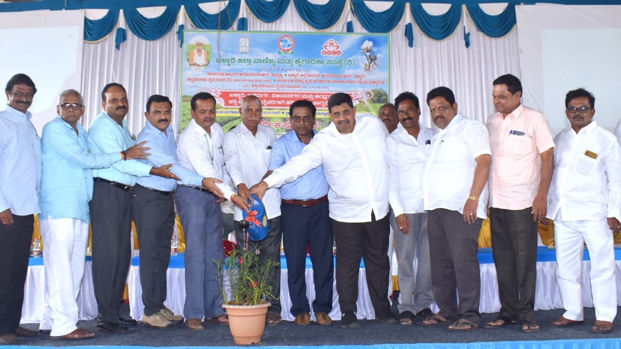 ಬಳ್ಳಾರಿ ನಗರದ ಕೃಷಿ ಉತ್ಪನ್ನ ಮಾರುಕಟ್ಟೆ ಸಮಿತಿ ಆವರಣದಲ್ಲಿ ಹತ್ತಿ ಬೆಳೆಗಾರರಿಗೆ ಜಾಗೃತಿ ಶಿಬಿರ ಆಯೋಜಿಸಲಾಗಿತ್ತು. ಶಿಬಿರದಲ್ಲಿ ವಿವಿಧ ತಜ್ಞರು ಪಾಲ್ಗೊಂಡು ರೈತರಿಗೆ ಮಾಹಿತಿ ನೀಡಿದರು.