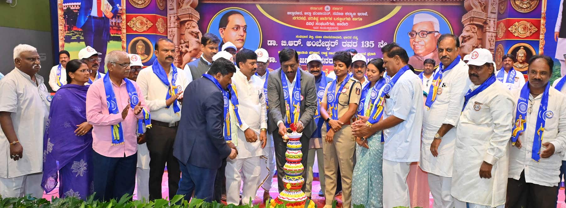 ಹಾವೇರಿಯ ಡಾ.ಬಿ.ಆರ್. ಅಂಬೇಡ್ಕರ್ ಭವನದಲ್ಲಿ ನಡೆದ ಡಾ.ಬಿ.ಆರ್. ಅಂಬೇಡ್ಕರ್ 135ನೇ ಹಾಗೂ ಡಾ.ಬಾಬು ಜಗಜೀವನರಾಂ 119ನೇ ಜಯಂತ್ಯುತ್ಸವ ಕಾರ್ಯಕ್ರಮವನ್ನು ಗಣ್ಯರು ಉದ್ಘಾಟಿಸಿದರು.