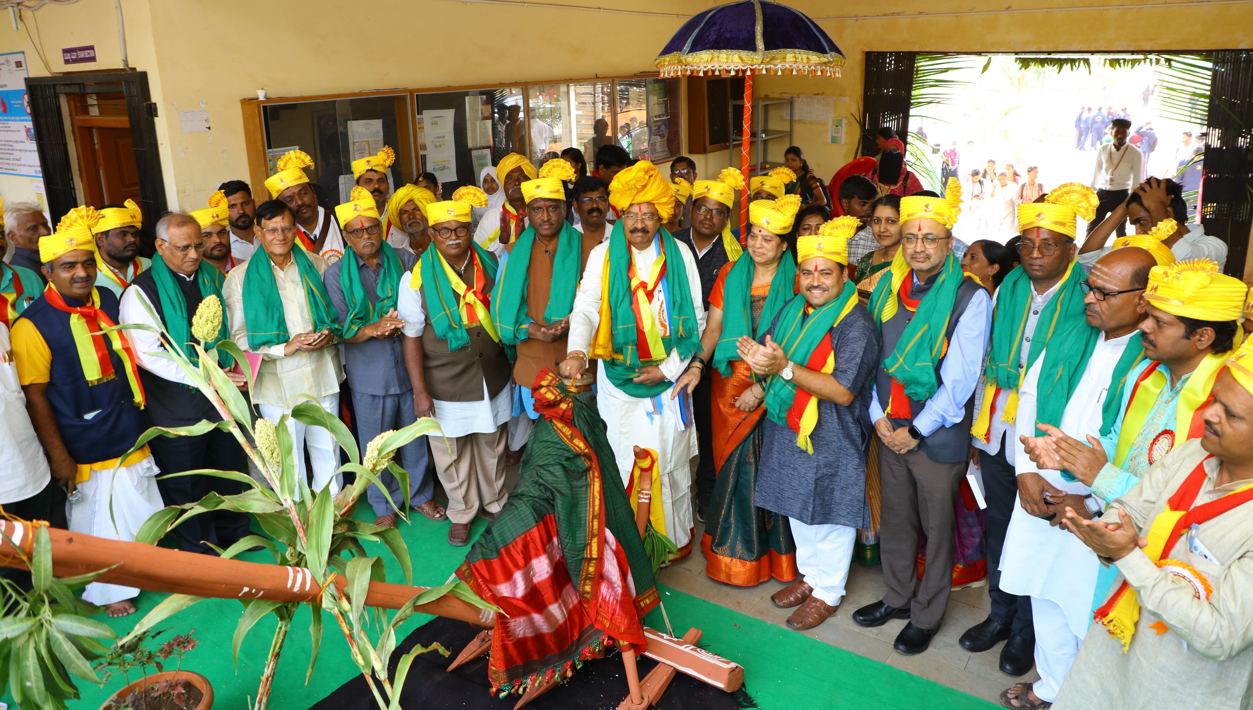 ಎತ್ತಿನ ಬಂಡಿಯಲ್ಲಿ ಉತ್ತರ ಕರ್ನಾಟಕ ಶೈಲಿಯ ರೇಷ್ಮೆ ಪೇಟ ಧರಿಸಿದ ಸಮ್ಮೇಳನಾಧ್ಯಕ್ಷರ ಭವ್ಯ ಮೆರವಣಿಗೆ ತೆಗ್ಗಿ ಗ್ರಾಮದ ಡೊಳ್ಳು ಹಾಗೂ ವಿವಿಧ ವಾದ್ಯದೊಂದಿಗೆ ನವನಗರದ ರಾಜೀವ ಗಾಂಧಿ ಕಾಲೋನಿ ವೃತ್ತದಿಂದ ಪ್ರಾರಂಭವಾಗಿ ಸಮ್ಮೇಳನಾಧ್ಯಕ್ಷರ ಮೆರವಣಿಗೆ ಪ್ರಮುಖ ರಸ್ತೆಯ ಮೂಲಕ ಕಾಲೇಜಿಗೆ ಆಗಮಿಸಿತು. ಕುಲಪತಿಗಳು, ಗಣ್ಯರು, ಪ್ರಾಚಾರ್ಯರು, ಅತಿಥಿಗಳು, ಸಾಹಿತಿಗಳು, ಸಂಶೋಧನಾರ್ಥಿಗಳು, ದೇಸಿ ಉಡುಗೆಯಲ್ಲಿದ್ದ ಬೋಧಕರು, ವಿದ್ಯಾರ್ಥಿಗಳು ಭಾಗವಹಿಸಿದ್ದರು.