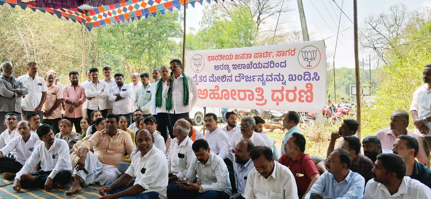 ತಾಲೂಕಿನ ಅಂಬಾರಗೋಡ್ಲು ಸಮೀಪದ ಮುರಕ್ಕಿ ಗ್ರಾಮದ ಯೋಗರಾಜ್ ಎಂಬುವವರ ಬಗರ್ಹುಕುಂ ಜಮೀನನ್ನು ಗುರುವಾರ ಅರಣ್ಯ ಇಲಾಖೆ ಅಧಿಕಾರಿಗಳು ನೋಟಿಸ್ ನೀಡದೆ ತೆರವುಗೊಳಿಸುವ ಜೊತೆಗೆ ಕುಟುಂಬಕ್ಕೆ ಬೆದರಿಕೆ ಹಾಕಿರುವ ಘಟನೆಗೆ ಸಂಬಂಧಪಟ್ಟಂತೆ ಅಂಬಾರಗೋಡ್ಲು ಅರಣ್ಯ ಇಲಾಖೆ ಕಚೇರಿ ಎದುರು ಬಿಜೆಪಿ ವತಿಯಿಂದ ಮಾಜಿ ಸಚಿವ ಎಚ್.ಹಾಲಪ್ಪ ನೇತೃತ್ವದಲ್ಲಿ ಅಹೋರಾತ್ರಿ ಧರಣಿ ನಡೆಸಲಾಯಿತು.
