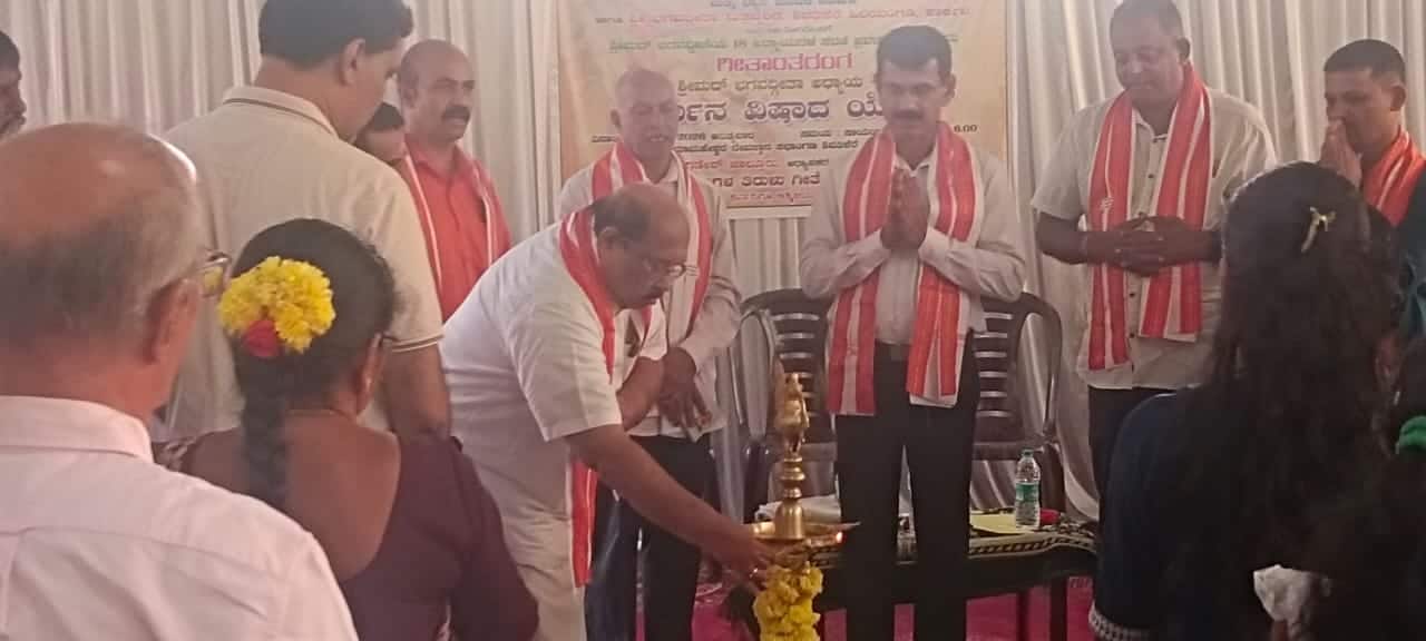 ಕಾರ್ಕಳ: ಸೋಂದಾ ಶ್ರೀ ಸ್ವರ್ಣವಲ್ಲೀ ಮಹಾಸಂಸ್ಥಾನ, ಶಿರಸಿ ಸಾರ್ವಜನಿಕ ಶ್ರೀ ಗಣೇಶೋತ್ಸವ ಸಮಿತಿ ಕಾರ್ಕಳ, ಶ್ರೀ ಬಿ. ಮಂಜುನಾಥ ಪೈ ಸಾಂಸ್ಕೃತಿಕ ಸಭಾಭವನ, ಅಮಿತ್ ಎಸ್. ಪೈ ಮೆಮೋರಿಯಲ್, ಸ್ವಾಮಿ ವಿವೇಕಾನಂದ ಯೋಗ ಮತ್ತು ಧ್ಯಾನ ಮಂದಿರ ಪೆರ್ವಾಜೆ, ಶ್ರೀ ಭಗವದ್ಗೀತಾ ಮಿತ್ರವೃಂದ ಶಿವತಿಕೆರೆ, ಹಿರಿಯಂಗಡಿ ಕಾರ್ಕಳ ಸಹಯೋಗದಲ್ಲಿ ಶ್ರೀಮದ್ ಭಗವದ್ಗೀತೆಯ ಹದಿನೆಂಟು ಅಧ್ಯಾಯಗಳ ಸರಣಿ ಪ್ರವಚನ ಕಾರ್ಯಕ್ರಮದ ಶುಭಾರಂಭ ಹಿರಿಯಂಗಡಿ ಶಿವತಿಕೆರೆಯ ಶ್ರೀ ಉಮಾಮಹೇಶ್ವರ ದೇವಸ್ಥಾನದ ಸಭಾಂಗಣದಲ್ಲಿ ನಡೆಯಿತು.ಕಾರ್ಯಕ್ರಮದ ಆರಂಭದಲ್ಲಿ ಉಪಸ್ಥಿತರಿದ್ದ ಸಮಸ್ತರಿಂದ ಭಗವದ್ಗೀತೆಯ ಹನ್ನೆರಡನೆಯ ಅಧ್ಯಾಯದ ಸಾಮೂಹಿಕ ಪಠಣ ನಡೆಯಿತು. ಬಳಿಕ ನಡೆದ ಸಭಾ ಕಾರ್ಯಕ್ರಮದಲ್ಲಿ ಗಣೇಶೋತ್ಸವ ಸಮಿತಿಯ ಗೌರವಾಧ್ಯಕ್ಷ ರಾಮಚಂದ್ರ ನಾಯಕ್ ಅವರು ದೀಪ ಪ್ರಜ್ವಲನೆ ನೆರವೇರಿಸಿದರು. ನಂತರ ಶಿಕ್ಷಕ ಗಣೇಶ್ ಜಾಲ್ಸೂರು ಅವರು ಗೀತೆಯ ಮೊದಲ ಅಧ್ಯಾಯವಾದ ಅರ್ಜುನ ವಿಷಾದ ಯೋಗದ ಕುರಿತು ಉಪನ್ಯಾಸ ನೀಡಿದರು.ಈ ಗೀತಾ ಅಭಿಯಾನದಲ್ಲಿ ಹಿರಿಯಂಗಡಿ ಶಿವತಿಕೆರೆ ಶ್ರೀ ಉಮಾಮಹೇಶ್ವರ ದೇವಸ್ಥಾನದ ಮೊಕ್ತೇಸರರಾದ ಸಂಜೀವ ದೇವಾಡಿಗ, ಸುದರ್ಶನ ಭಂಡಾರಿ, ಗುರುಪ್ರಸಾದ್ ರಾವ್, ಜಯಂತಿ ದೇವಾಡಿಗ ಹಾಗೂ ದೇವಳದ ಸೇವಾ ಸಮಿತಿ ಅಧ್ಯಕ್ಷ ನಾಗೇಶ್ ದೇವಾಡಿಗ ಉಪಸ್ಥಿತರಿದ್ದರು.ಕಾರ್ಯಕ್ರಮವನ್ನು ಅರುಣಾ ದಿನೇಶ್ ನಿರೂಪಿಸಿದರು. ದೀಪಾ ದೇವಾಡಿಗ ಸ್ವಾಗತಿಸಿದರು. ಸ್ವಸ್ತಿ ಪ್ರಾರ್ಥನೆ ಸಲ್ಲಿಸಿದರು. ಕಾರ್ಯಕ್ರಮವನ್ನು ಗೀತಾ ಅಭಿಯಾನದ ಸಂಘಟಕ ಸಂಜಯ ಕುಮಾರ್ ಸಂಯೋಜಿಸಿದರು. ಗಣೇಶೋತ್ಸವ ಸಮಿತಿ ಕಾರ್ಯದರ್ಶಿ ನವೀನ್ ಪೈ ಸಹಕರಿಸಿದರು.