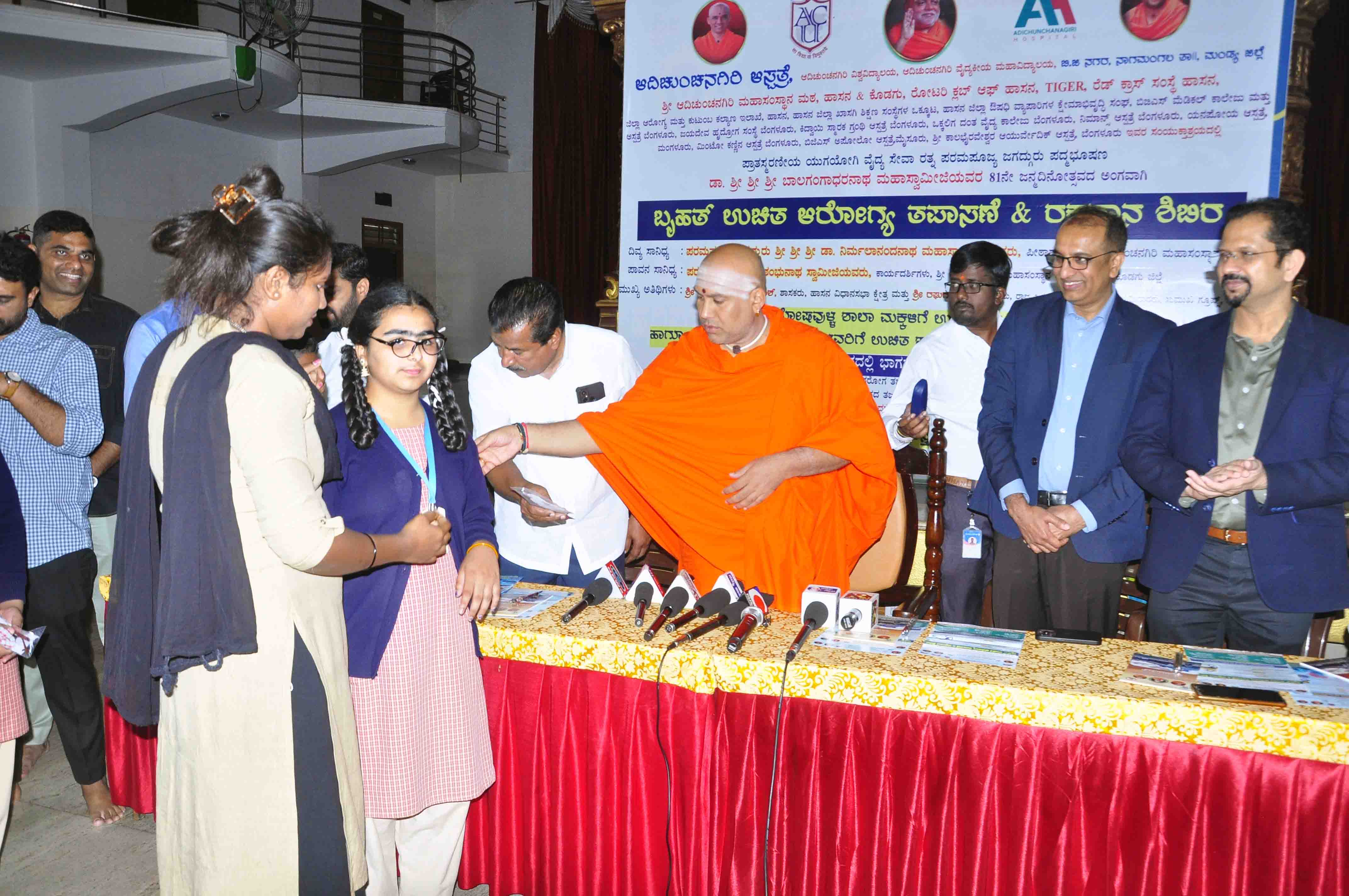 ಹಾಸನ: ಜಗದ್ಗುರು ಪದ್ಮಭೂಷಣ ಶ್ರೀ ಡಾ. ಬಾಲಗಂಗಾಧರನಾಥ ಮಹಾಸ್ವಾಮೀಜಿಯವರ ಜನ್ಮದಿನೋತ್ಸವದ ಅಂಗವಾಗಿ ಆದಿಚುಂಚನಗಿರಿ ವಿಶ್ವವಿದ್ಯಾಲಯ, ಆದಿಚುಂಚನಗಿರಿ ವೈದ್ಯಕೀಯ ಮಹಾವಿದ್ಯಾಲಯ ಹಾಗೂ ಆದಿಚುಂಚನಗಿರಿ ಆಸ್ಪತ್ರೆಯ ಆಶ್ರಯದಲ್ಲಿ ಬೃಹತ್ ಉಚಿತ ಆರೋಗ್ಯ ತಪಾಸಣೆ ಹಾಗೂ ರಕ್ತದಾನ ಶಿಬಿರವನ್ನು ಜ.೨೦ರ ಮಂಗಳವಾರ ಬೆಳಗ್ಗೆ ೯ ರಿಂದ ಸಂಜೆ ೪ ರವರೆಗೆ ಹಾಸನ ನಗರದ ಎಂ.ಜಿ ರಸ್ತೆಯಲ್ಲಿರುವ ಆದಿಚುಂಚನಗಿರಿ ಆಂಗ್ಲ ಮಾಧ್ಯಮ ಶಾಲಾ ಆವರಣದಲ್ಲಿ ಆಯೋಜಿಸಲಾಗಿದೆ ಎಂದು ಮಠದ ಮಠಾಧೀಶರಾದ ಶ್ರೀ ಶಂಭುನಾಥ ಸ್ವಾಮೀಜಿ ತಿಳಿಸಿದರು.ನಗರದ ಶ್ರೀ ಆದಿಚುಂಚನಗಿರಿ ಮಠದ ಸಮುದಾಯಭವನದಲ್ಲಿ ಮಾಧ್ಯಮದೊಂದಿಗೆ ಮಾತನಾಡಿ, ಈ ಶಿಬಿರವನ್ನು ಶ್ರೀ ಆದಿಚುಂಚನಗಿರಿ ಮಹಾಸಂಸ್ಥಾನ ಮಠ (ಹಾಸನ ಮತ್ತು ಕೊಡಗು), ರೋಟರಿ ಕ್ಲಬ್ ಆಫ್ ಹಾಸನ, ಜಿಲ್ಲಾ ಆರೋಗ್ಯ ಮತ್ತು ಕುಟುಂಬ ಕಲ್ಯಾಣ ಇಲಾಖೆ, ಹಾಸನ ಜಿಲ್ಲಾ ಖಾಸಗಿ ಶಿಕ್ಷಣ ಸಂಸ್ಥೆಗಳ ಒಕ್ಕೂಟ, ಜಿಲ್ಲಾ ವೈದ್ಯಕೀಯ ವ್ಯಾಪಾರಿಗಳು ಕ್ಷೇಮಾಭಿವೃದ್ಧಿ ಸಂಘ ಸೇರಿದಂತೆ ಹಲವು ಪ್ರತಿಷ್ಠಿತ ಸಂಸ್ಥೆಗಳ ಸಹಯೋಗದಲ್ಲಿ ಹಮ್ಮಿಕೊಳ್ಳಲಾಗಿದೆ. ಬಿಜಿಎಸ್ ಮೆಡಿಕಲ್ ಕಾಲೇಜು ಮತ್ತು ಆಸ್ಪತ್ರೆ ಬೆಂಗಳೂರು, ಜಯದೇವ ಹೃದ್ರೋಗ ಸಂಸ್ಥೆ, ಕಿದ್ವಾಯಿ ಸ್ಮಾರಕ ಗ್ರಂಥಿ ಸಂಸ್ಥೆ, ನಿಮ್ಹಾನ್ಸ್, ಮಿಂಟೋ ಕಣ್ಣಿನ ಆಸ್ಪತ್ರೆ, ಯನಪೋಯ ಆಸ್ಪತ್ರೆ ಮಂಗಳೂರು, ಬಿಜಿಎಸ್ ಅಪೋಲೋ ಆಸ್ಪತ್ರೆ ಮೈಸೂರು ಸೇರಿದಂತೆ ರಾಜ್ಯದ ಪ್ರಮುಖ ಆಸ್ಪತ್ರೆಗಳು ಈ ಶಿಬಿರಕ್ಕೆ ಕೈಜೋಡಿಸಿವೆ ಎಂದರು.