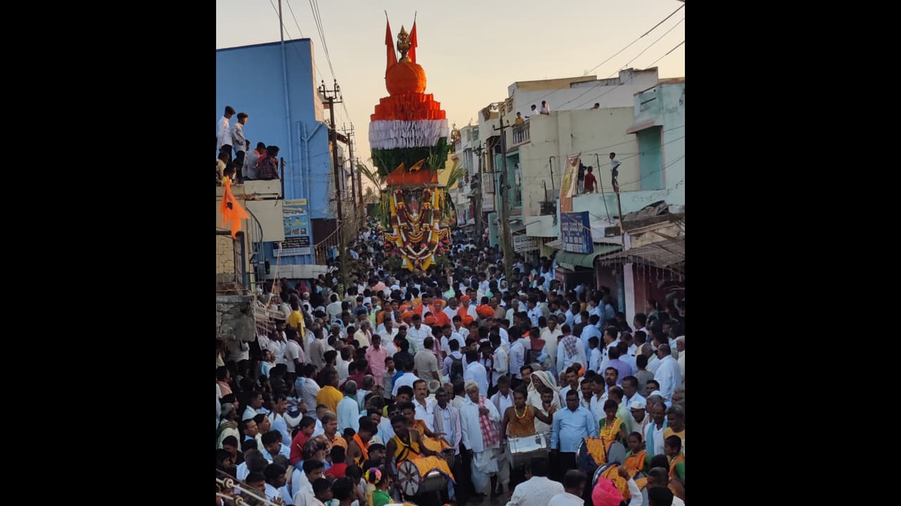 ಹರಹರ ಮಹಾದೇವ ಎನ್ನುತ್ತ ಸೇರಿದ್ದ ಸಾವಿರಾರು ಭಕ್ತರು ರಥವನ್ನು ಎಳೆದು ಸಂಭ್ರಮಿಸಿದರು. ನೂತನ ರಥಕ್ಕೆ ಭಕ್ತರು ಉತ್ತತ್ತಿ, ಬಾಳೆ ಹಣ್ಣು. ಪೇರಲ ಹಣ್ಣು ಎಸೆಯುವ ಮೂಲಕ ಜಾತ್ರೆಗೆ ಮೆರಗು ಮೂಡಿಸಿದರು.ನೂತನ ರಥದ ಮುಂದೆ ಕೊಂಬು ಕಹಳೆಯನ್ನು ಮೊಳಗಿಸುವ ತಂಡದೊಂದಿಗೆ ಶಹನಾಯಿ ವಾದನ, ನಂದಿ ಕೋಲು ಕುಣಿತದ ತಂಡ, ಜಾಂಜ್ ಮೇಳವು ಜಾತ್ರೆಯ ಅಂದವನ್ನು ಹೆಚ್ಚಿಸುವ ಕಾರ್ಯ ಮಾಡಿದವು.ಮುಳಗುಂದ ಬಾಲಲೀಲಾ ಮಹಾಂತ ಸ್ವಾಮಿಮಠದ ಜಗದ್ಗುರು ಮಲ್ಲಿಕಾರ್ಜುನ ಸ್ವಾಮಿಗಳು ಗುರುವಾರ ಬೆಳಗ್ಗೆ ಭಕ್ತರಿಗೆ ದರ್ಶನಾರ್ಶಿವಾದ ಕರುಣಿಸಿ ರಥವು ಸಾಂಗವಾಗಿ ನೆರವೇರಲಿ ಎಂದು ನುಡಿದರು.ಕಡುಬಿನ ಕಾಳಗ ಇಂದು- ಗೊಜನೂರ ಗ್ರಾಮದ ವಿರೂಪಾಕ್ಷೇಶ್ವರ ಸ್ವಾಮಿಗಳ ಕಡುಬಿನ ಕಾಳಗವು ಶುಕ್ರವಾರ ಸಂಜೆ 5.30ಕ್ಕೆ ಅದ್ಧೂರಿಯಾಗಿ ನಡೆಯುತ್ತದೆ.