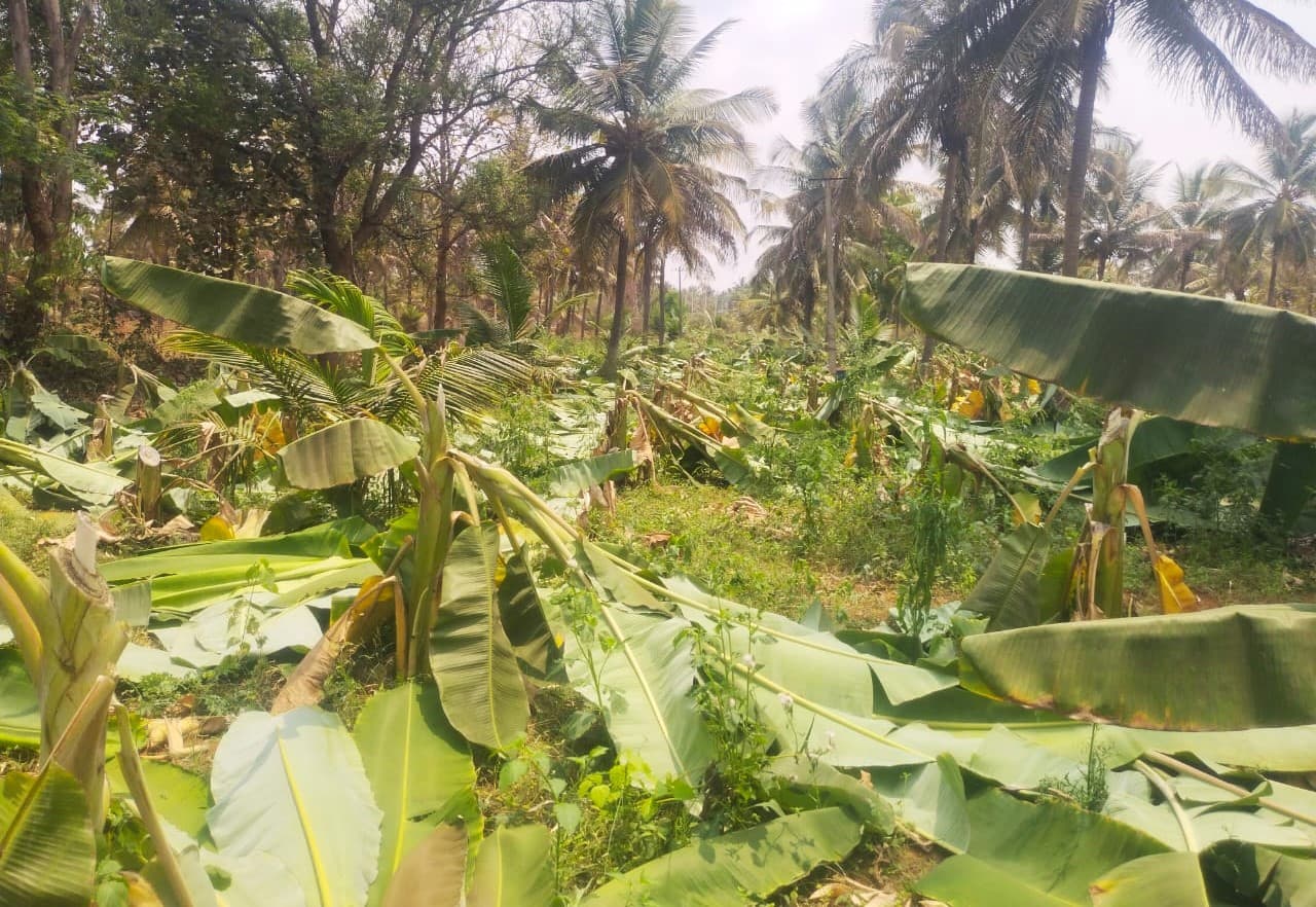 ತಾಲೂಕಿನ ಅಂಚೇಚೋಮನಹಳ್ಳಿ ಸರ್ವೆ ನಂ- 33ರಲ್ಲಿ ಚಂದ್ರಪ್ಪ ಅವರ ಸ್ವಂತವಾದ 2.30 ಗುಂಟೆ ಜಮೀನಿನಲ್ಲಿ ಇದೇ ಮೊದಲ ಭಾರಿಗೆ ಕಳೆದ ಮೇ ತಿಂಗಳಲ್ಲಿ 1500 ಬಾಳೆ ಸಸಿ ನೆಟ್ಟು ಆರೈಕೆ ಮಾಡಿದ್ದು, ಮುಂದಿನ ತಿಂಗಳು ಫಸಲು ಕೈ ಸೇರಬೇಕಿತ್ತು. ಅದರೆ ಕಿಡಿಗೇಡಿಗಳು ಸೋಮವಾರ ರಾತ್ರಿ ಬಾಳೆ ತೋಟದ 1500 ಫಲ ಬಿಡುವ ಬಾಳೆಗಿಡಗಳನ್ನು ಸಂಪೂರ್ಣ ಕತ್ತರಿಸಿ ಹಾಕಿ ಹೋಗಿದ್ದು ರೈತ ಚಂದ್ರಪ್ಪ ತೋಟದ ದೃಶ್ಯ ಕಂಡು ಕಂಗಾಲಾಗಿದ್ದಾರೆ.