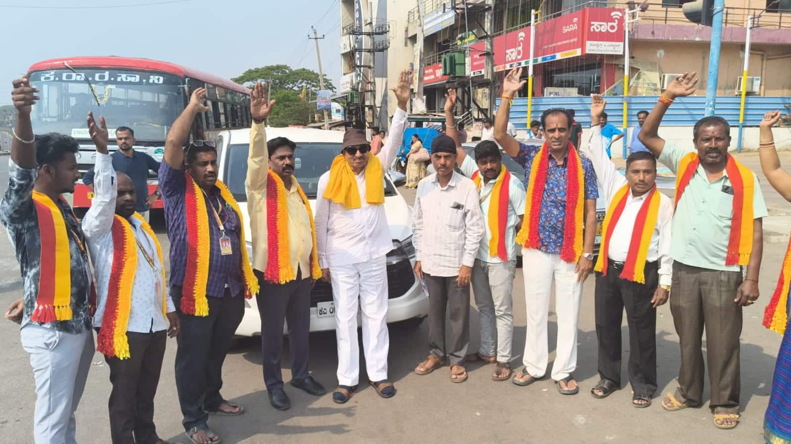 ನಗರದ ಐಜೂರು ವೃತ್ತದಲ್ಲಿ ರಾಜ್ಯ ಸರ್ಕಾರ ಆಯವ್ಯಯದಲ್ಲಿ ಕನ್ನಡ ಮಾಧ್ಯಮ ಶಾಲೆಗಳಿಗೆ ಅನುದಾನ ಕೊಡದೆ ಕಡೆಗಣಿಸಿರುವುದನ್ನು ಖಂಡಿಸಿ ಹಾಗೂ ಸಾಮಾಜಿಕ ಜಾಲತಾಣ ನಿಷೇಧ ಮಾಡಬಾರದೆಂದು ಆಗ್ರಹಿಸಿ ಕನ್ನಡಪರ ಸಂಘಟನೆಗಳೊಂದಿಗೆ ಪ್ರತಿಭಟನೆ ನಡೆಸಿದ ನಂತರ ಅವರು ಸುದ್ದಿಗಾರರೊಂದಿಗೆ ಮಾತನಾಡಿದರು.ಕೇರಳ, ತಮಿಳುನಾಡು, ಆಂಧ್ರಪ್ರದೇಶ, ಮಹಾರಾಷ್ಟ್ರ ರಾಜ್ಯಗಳು ಕರ್ನಾಟಕದ ಗಡಿ ಭಾಗಗಳಲ್ಲಿರುವ ಕನ್ನಡ ಶಾಲೆಗಳನ್ನು ಮುಚ್ಚುತ್ತಿವೆ. ಮತ್ತೊಂದೆಡೆ ಕರ್ನಾಟಕ ಸರ್ಕಾರವು ಕರ್ನಾಟಕ ಪಬ್ಲಿಕ್ ಶಾಲೆಗಳನ್ನು ತೆರೆದು ಕನ್ನಡ ಶಾಲೆಗಳನ್ನು ಮುಚ್ಚಲು ಹೊರಟಿದೆ. ಕನ್ನಡ ಶಾಲೆಗಳ ಉಳಿವಿಗಾಗಿ ಬಂದ್ ಗೆ ಕರೆ ಕೊಡುತ್ತಿದ್ದು, ಶಿಕ್ಷಕರು ಹಾಗೂ ಎಲ್ಲ ಸಂಘ ಸಂಸ್ಥೆಗಳು ಬೆಂಬಲ ನೀಡಬೇಕು ಎಂದರು.