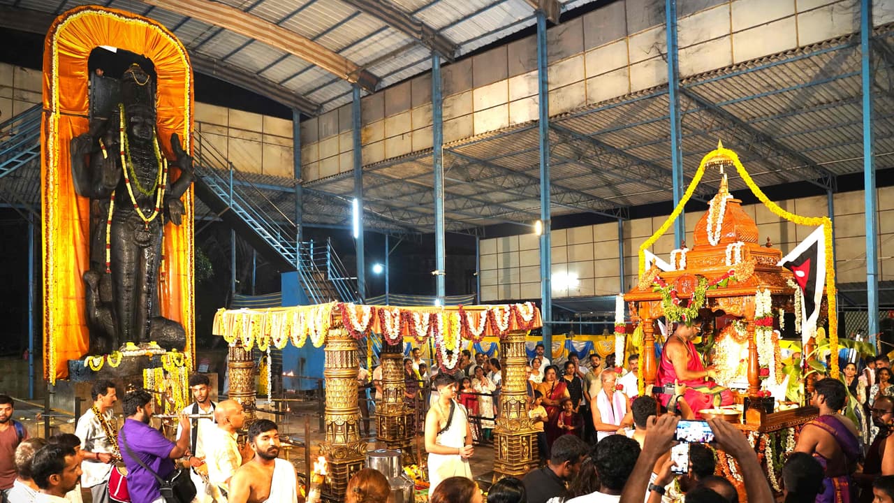 ಉಡುಪಿ: ಇಲ್ಲಿನ ಬನ್ನಂಜೆ ಶ್ರೀ ಶನಿ ಕ್ಷೇತ್ರದಲ್ಲಿ ಶ್ರೀ ಶನಿ ದೇವರ 23 ಅಡಿ ಎತ್ತರದ ಏಕಶಿಲಾ ವಿಗ್ರಹದ ಸನ್ನಿಧಿಯಲ್ಲಿ ಶ್ರೀ ಬನ್ನಂಜೆ ರಾಘವೇಂದ್ರ ತೀರ್ಥ ಶ್ರೀಪಾದರ ಮಾರ್ಗದರ್ಶನದಲ್ಲಿ ಚಂದ್ರ ಮಂಡಲ ರಥೋತ್ಸವ ಅದ್ದೂರಿಯಾಗಿ ನಡೆಯಿತು.ಕೊರಂಗ್ರಪಾಡಿ ಕುಮಾರಗುರು ತಂತ್ರಿ ನೇತೃತ್ವದಲ್ಲಿ ಧಾರ್ಮಿಕ ಪೂಜಾ ವಿಧಿವಿಧಾನಗಳನ್ನು ನೆರವೇರಿಸಲಾಯಿತು. ಇಲ್ಲಿನ ಶ್ರೀ ರಾಮ ವಿಠಲ ಹಾಗೂ ಶ್ರೀ ಶನೈಶ್ವರಸ್ವಾಮಿ ಸನ್ನಿಧಿಯಲ್ಲಿ ಕೊಳಲು ವಾದನ, ಮಂಗಳವಾದ್ಯ, ಚಂಡೆ ವಾದನಗಳು ರಥೋತ್ಸವಕ್ಕೆ ಇನ್ನಷ್ಟು ದೈವಿಕ ಕಳೆ ನೀಡಿದವು. ಸಾವಿರಾರು ಭಕ್ತರು ಶನಿ ದೇವರಿಗೆ ಎಳ್ಳುಗಂಟು ದೀಪ ಬೆಳಗಿಸಿ, ಪ್ರಸಾದ ಸ್ವೀಕರಿಸಿದರು. ಈ ಎಲ್ಲ ಕಾರ್ಯಕ್ರಮಗಳಲ್ಲಿ ದೇವಳದ ಪ್ರಧಾನ ಅರ್ಚಕ ಸತ್ಯನಾರಾಯಣ ಆಚಾರ್ಯ, ಪ್ರಮುಖರಾದ ವಿಜಯಲಕ್ಷ್ಮೀ ಆಚಾರ್ಯ, ಯತೀಶ್ ಆಚಾರ್ಯ, ಪ್ರತೀಕ್ ಅಚಾರ್ಯ ಹಾಗೂ ನೂರಾರು ಭಕ್ತರು ಉಪಸ್ಥಿತರಿದ್ದರು, ಇದೇ ಸಂದರ್ಭ ಶ್ರೀ ರಾಮವಿಠಲ ವೇದಿಕೆಯಲ್ಲಿ ಗೋಕುಲ ದ್ವನಿ ಕರ್ನಾಟಕ ಕಲಾಶ್ರೀ ವಿದ್ವಾನ್ ಎಚ್.ಎಸ್. ವೇಣುಗೋಪಾಲ್ ಬೆಂಗಳೂರು ತಂಡದವರಿಂದ ಕೊಳಲು ವಾದನ ನಡೆಯಿತು.