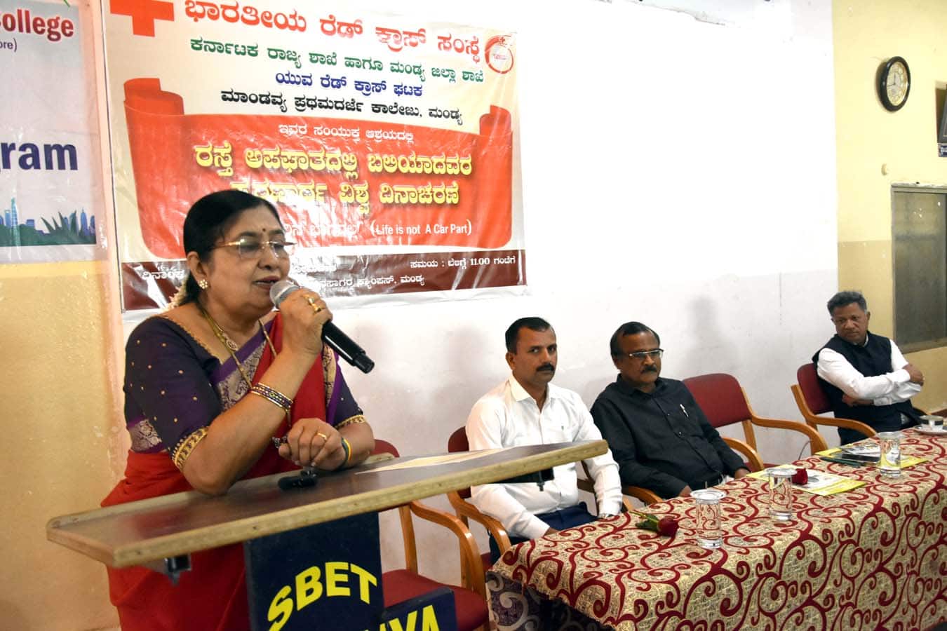 ಸವಾರರು ವಾಹನಗಳಲ್ಲಿ ಸಂಚರಿಸುವಾಗ ಅಪಘಾತ ಆಗದಂತೆ ಎಚ್ಚರಿಕೆ ವಹಿಸುವಂತೆ ಸಂಕಲ್ಪ ಮಾಡುವ ಅಗತ್ಯವಿದೆ ಎಂದು ಜಿಲ್ಲಾ ರೆಡ್ಕ್ರಾಸ್ ಸಂಸ್ಥೆ ಸಭಾಧ್ಯಕ್ಷೆ ಡಾ.ಮೀರಾಶಿವಲಿಂಗಯ್ಯ ಹೇಳಿದರು.ನಗರದಲ್ಲಿರುವ ಜ್ಞಾನಸಾಗರ ಕ್ಯಾಂಪಸ್ನಲ್ಲಿ ಜಿಲ್ಲಾ ರೆಡ್ಕ್ರಾಸ್ ಸಂಸ್ಥೆ, ಕಾಲೇಜಿನ ಯುವರೆಡ್ ಕ್ರಾಸ್ ಘಟಕ ಆಯೋಜಿಸಿದ್ದ ರಸ್ತೆ ಅಪಘಾತದಲ್ಲಿ ಬಲಿಯಾದವರ ಸ್ಮರಣಾರ್ಥ ವಿಶ್ವ ದಿನಾಚರಣೆ ಕಾರ್ಯಕ್ರಮಕ್ಕೆ ಚಾಲನೆ ನೀಡಿ ಮಾತನಾಡಿದರು.