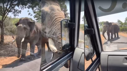 ಬನ್ನೇರುಘಟ್ಟ: ಸಫಾರಿ ವೇಳೆಯಲ್ಲಿ ವಾಹನದ ಮೇಲೆ ಸಾಕಾನೆಯೊಂದು ದಾಳಿ ನಡೆಸಿ ವಾಹನದ ಸೈಡ್ ಮಿರರ್ ಗಾಜು ಪುಡಿ ಪುಡಿಯಾಗಿಸಿದ ಘಟನೆ ನಡೆದಿದೆ.