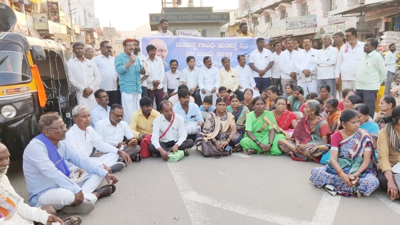 ಮಹಾತ್ಮ ಗಾಂಧೀಜಿ ಪುಣ್ಯಸ್ಮರಣೆ ಅಂಗವಾಗಿ ಶಹಾಪುರದ ಬಸವೇಶ್ವರ ವೃತ್ತದಲ್ಲಿ ಕೋಮು ಸೌಹಾರ್ದ ವೇದಿಕೆ ವತಿಯಿಂದ ಮಾನವ ಸರಪಳಿ ನಿರ್ಮಿಸಲಾಗಿತ್ತು.