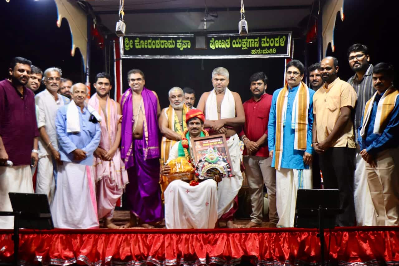 ಭಾಗವತರಾಗಿ ತಿರುಗಾಟದ 25ನೇ ವರ್ಷದ ಸಂಭ್ರಮದಲ್ಲಿರುವ ಭಾಗವತ ರವಿಚಂದ್ರ ಕನ್ನಡಿಕಟ್ಟೆ ಅವರನ್ನು ಕಟೀಲಿನಲ್ಲಿ ಸೋಮವಾರ ಹನುಮಗಿರಿ ಮೇಳದ ಯಕ್ಷಗಾನ ಬಯಲಾಟದ ಸಂದರ್ಭ ಅಭಿಮಾನಿ ಬಳಗದಿಂದ ಸಂಮಾನಿಸಲಾಯಿತು.