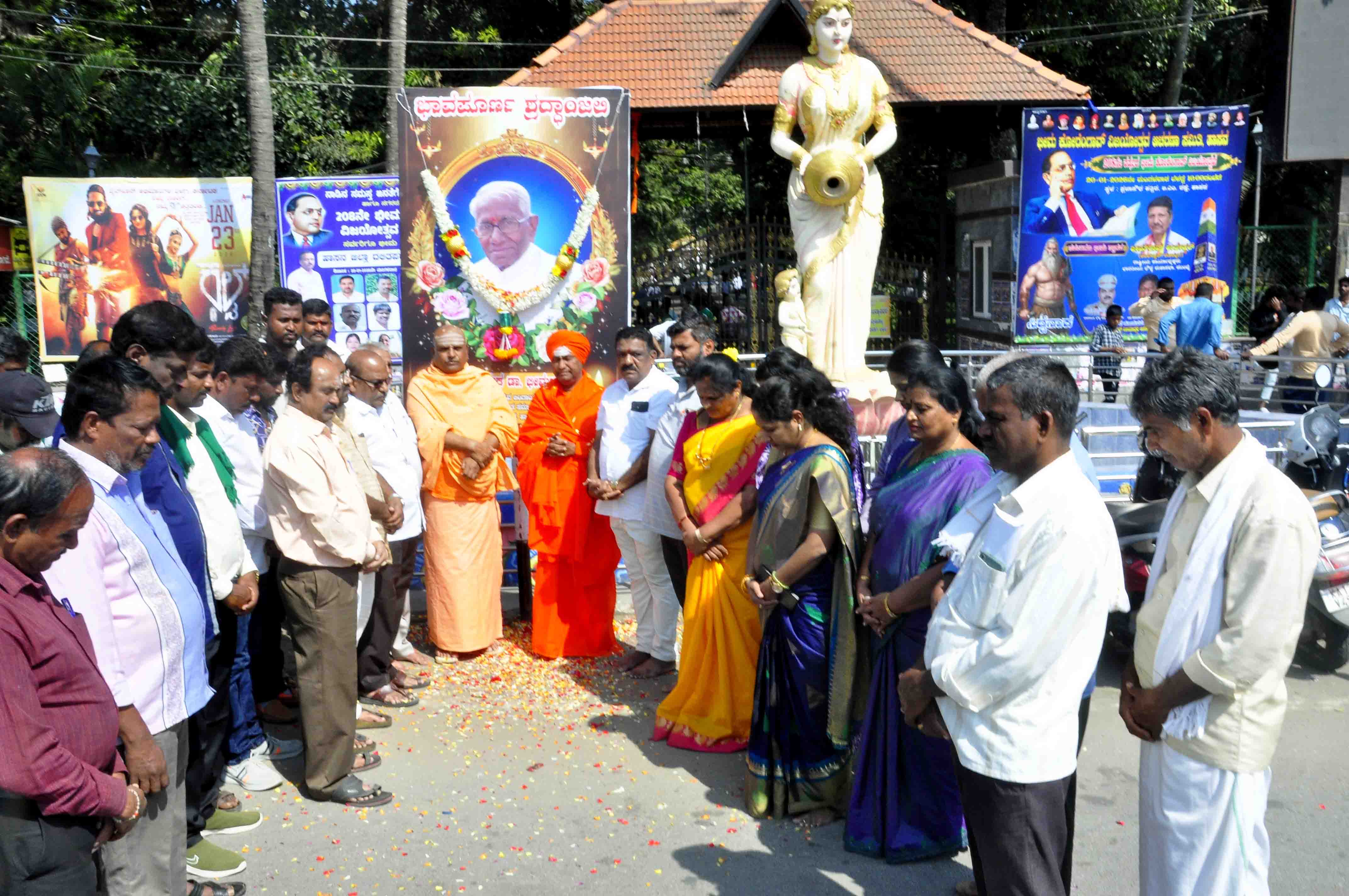 ವೀರಶೈವ ಲಿಂಗಾಯಿತ ಸಮಾಜದ ಹಿತಕ್ಕಾಗಿ ಜೀವನವಿಡೀ ಶ್ರಮಿಸಿದ, ರಾಜಕೀಯ ಹಾಗೂ ಸಾಮಾಜಿಕ ಕ್ಷೇತ್ರಗಳಲ್ಲಿ ಅಪ್ರತಿಮ ಸೇವೆ ಸಲ್ಲಿಸಿದ ಶತಾಯುಷಿ ಭೀಮಣ್ಣ ಖಂಡ್ರೆ ಅವರ ನಿಧನವು ಇಡೀ ಸಮಾಜಕ್ಕೆ ತುಂಬಲಾರದ ನಷ್ಟವಾಗಿದೆ ಎಂದು ಸೀಗೆಗುಡ್ಡ ಮಲ್ಲೇಶ್ವರ ಮಠದ ನಂದೀಶ್ವರ ಶಿವಾಚಾರ್ಯ ಮಹಾಸ್ವಾಮೀಜಿ ವಿಷಾದಿಸಿದರು.ನಗರದ ಹೇಮಾವತಿ ಪ್ರತಿಮೆ ಬಳಿ ವೀರಶೈವ ಲಿಂಗಾಯಿತ ಹಾಗೂ ಇತರೆ ಸಮಾಜದಿಂದ ಶನಿವಾರ ನಡೆದ ಶ್ರದ್ಧಾಂಜಲಿ ಸಭೆಯಲ್ಲಿ ಭೀಮಣ್ಣ ಖಂಡ್ರೆ ಭಾವಚಿತ್ರಕ್ಕೆ ಪುಷ್ಪನಮನ ನೆರವೇರಿಸಿ ಮಾತನಾಡಿದ ಅವರು, ನಮ್ಮ ಸಮಾಜಕ್ಕೆ ಇಂದು ದೊಡ್ಡ ಅನ್ಯಾಯವಾಗಿದೆ. ಅನೇಕ ವರ್ಷಗಳ ಕಾಲ ಸಮಾಜಕ್ಕಾಗಿ ದುಡಿದ ಮಹಾನ್ ಚೇತನವನ್ನು ನಾವು ಕಳೆದುಕೊಂಡಿದ್ದೇವೆ. ಒಂದು ಕಾಲದಲ್ಲಿ ದೇವರಾಜ ಅರಸು ಅವರು ಮುಖ್ಯಮಂತ್ರಿಯಾಗಿದ್ದ ಸಂದರ್ಭದಲ್ಲೇ ನಮ್ಮ ಸಮಾಜವನ್ನು ಮೇಲ್ವರ್ಗಕ್ಕೆ ಸೇರಿಸಿದಾಗ, ಅದನ್ನು ವಿರೋಧಿಸಿ ವಿಧಾನಸೌಧದ ಮುಂದೆ ಪ್ರತಿಭಟನೆ ನಡೆಸಿದ ಧೈರ್ಯಶಾಲಿ ನಾಯಕ ಭೀಮಣ್ಣ ಖಂಡ್ರೆ. ಅವರ ಹೋರಾಟದ ಫಲವಾಗಿ ಸಮಾಜವು ೩ಬಿ ಮೀಸಲಾತಿ ಪಡೆಯಲು ಸಾಧ್ಯವಾಯಿತು ಎಂದು ಸ್ಮರಿಸಿದರು.