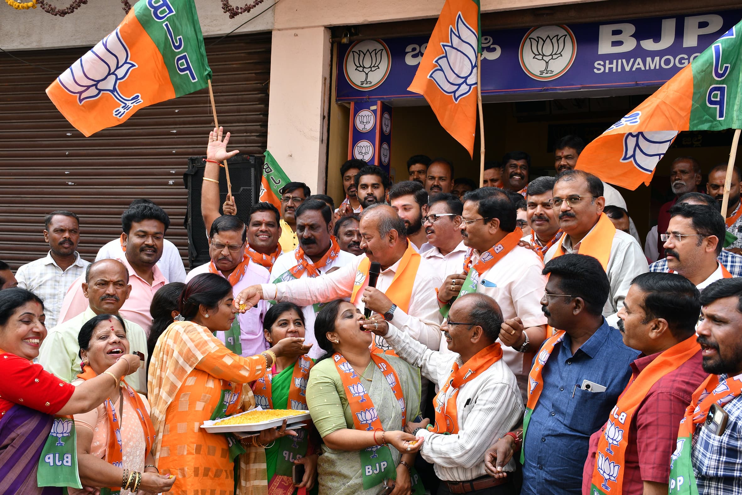 ನಗರದ ಜಿಲ್ಲಾ ಬಿಜೆಪಿ ಕಚೇರಿ ಎದುರು ಕಾರ್ಯಕರ್ತರು ಪಟಾಕಿ ಸಿಡಿಸಿ, ಸಿಹಿ ವಿತರಿಸಿ ಸಂಭ್ರಮಾಚರಣೆ ಆಚರಿಸಿದರು. ಈ ಸಂದರ್ಭ ಜಿಲ್ಲಾ ಬಿಜೆಪಿ ಅಧ್ಯಕ್ಷ ಜಗದೀಶ್, ಶಾಸಕ ಎಸ್.ಎನ್.ಚನ್ನಬಸಪ್ಪ, ವಿಧಾನ ಪರಿಷತ್ ಸದಸ್ಯ ಡಾ.ಧನಂಜಯ್ ಸರ್ಜಿ ಸೇರಿದಂತೆ ನೂರಾರು ಕಾರ್ಯಕರ್ತರು ಪಾಲ್ಗೊಂಡಿದ್ದರು.ಬಿಹಾರದಲ್ಲಿ ನಿರೀಕ್ಷೆಗೆ ಮೀರಿದ ಫಲಿತಾಂಶ: ಬಿ.ಎಸ್ ಯಡಿಯೂರಪ್ಪ