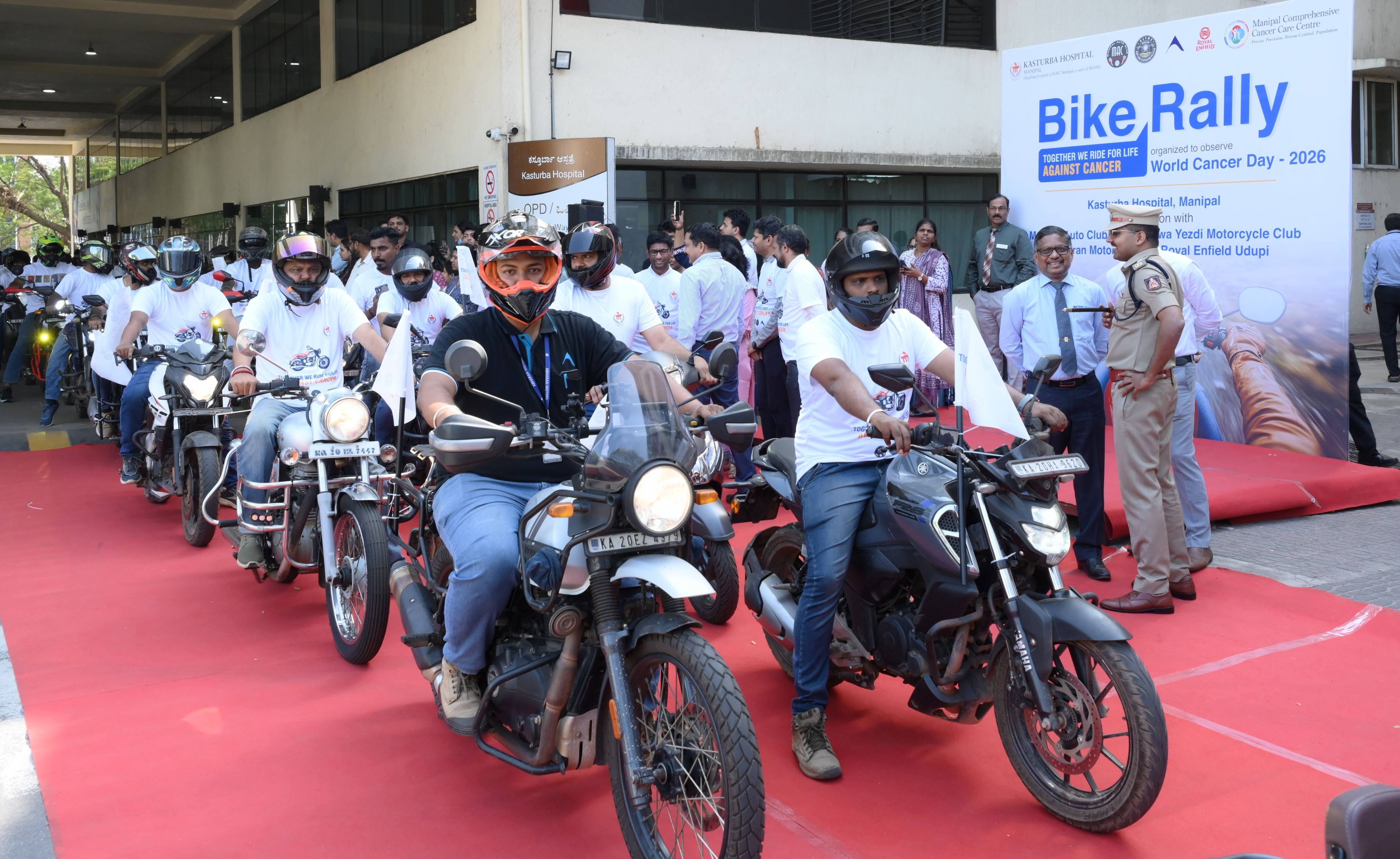 ಮಣಿಪಾಲ: ಪ್ರತಿವರ್ಷ ಫೆಬ್ರವರಿ 4ರಂದು ಆಚರಿಸಲ್ಪಡುವ ವಿಶ್ವ ಕ್ಯಾನ್ಸರ್ ದಿನದ ಅಂಗವಾಗಿ ಇಲ್ಲಿನ ಕಸ್ತೂರ್ಬಾ ಆಸ್ಪತ್ರೆಯು ಉಡುಪಿಯ ಆಟೋ ಕ್ಲಬ್, ಜಾವಾ–ಯೆಜ್ಡಿ ಮೋಟಾರ್ಸೈಕಲ್ ಕ್ಲಬ್, ರಾಯಲ್ ಎನ್ಫೀಲ್ಡ್ ರೈಡರ್ಸ್ ಹಾಗೂ ಆಭರಣ ಮೋಟಾರ್ಸ್ ಸಹಯೋಗದೊಂದಿಗೆ ನಾವು ಒಟ್ಟಾಗಿ ಕ್ಯಾನ್ಸರ್ ವಿರುದ್ಧ ಜೀವನಕ್ಕಾಗಿ ಸವಾರಿ ಮಾಡುತ್ತೇವೆ ಎಂಬ ದ್ಯೇಯದೊಂದಿಗೆ ಬೈಕ್ ರ್ಯಾಲಿಯನ್ನು ಆಯೋಜಿಸಿತು. ಈ ಬೈಕ್ ರ್ಯಾಲಿಯಲ್ಲಿ 100ಕ್ಕೂ ಹೆಚ್ಚು ಬೈಕ್ ಸವಾರರು ಉತ್ಸಾಹದಿಂದ ಭಾಗವಹಿಸಿದ್ದು, ಈ ರ್ಯಾಲಿ ಕ್ಯಾನ್ಸರ್ ರಹಿತ ಭವಿಷ್ಯದತ್ತ ಏಕತೆ, ಶಕ್ತಿ ಮತ್ತು ಬದ್ಧತೆಯ ಸಂಕೇತವಾಯಿತು. ರ್ಯಾಲಿಯು ಕಸ್ತೂರ್ಬಾ ಆಸ್ಪತ್ರೆಯಿಂದ ಹೊರಟು ಉಡುಪಿ ಮುಖ್ಯರಸ್ತೆಯ ಮೂಲಕ ಕಿನ್ನಿಮುಲ್ಕಿ ಸ್ವಾಗತ ಗೋಪುರದವರೆಗೆ ಹಾಗೂ ಅಲ್ಲಿಂದ ಮರಳಿ ಕಸ್ತೂರ್ಬಾ ಆಸ್ಪತ್ರೆಗೆ ಸಾಗಿ, ಕ್ಯಾನ್ಸರ್ ಜಾಗೃತಿ ಮತ್ತು ಸಮಯೋಚಿತ ವೈದ್ಯಕೀಯ ಚಿಕಿತ್ಸೆಯ ಮೂಲಕ ಜೀವ ಉಳಿಸಬಹುದೆಂಬ ಸಂದೇಶವನ್ನು ಜನಸಾಮಾನ್ಯರಿಗೆ ತಲುಪಿಸಿತು.ಈ ರ್ಯಾಲಿಗೆ ಉಡುಪಿ ಜಿಲ್ಲಾ ಪೊಲೀಸ್ ವರಿಷ್ಠಾಧಿಕಾರಿ ಹರಿರಾಮ್ ಶಂಕರ್ ಅವರು ಹಸಿರು ನಿಶಾನೆ ತೋರಿದರು. ಈ ಜಾಗೃತಿ ಕಾರ್ಯಕ್ರಮವನ್ನು ಶ್ಲಾಘಿಸುತ್ತಾ, ಸಾರ್ವಜನಿಕ ಆರೋಗ್ಯ ಕಾರ್ಯಕ್ರಮಗಳಲ್ಲಿ ಶಿಸ್ತು, ಸುರಕ್ಷಿತ ವಾಹನ ಚಾಲನೆ ಹಾಗೂ ಸಮುದಾಯದ ಸಹಕಾರ ಅತ್ಯಂತ ಮಹತ್ವದ್ದೆಂದು ಅವರು ಹೇಳಿದರು. ಸಮಾಜಮುಖಿ ಚಟುವಟಿಕೆಗಳಲ್ಲಿ ನಿರಂತರವಾಗಿ ತೊಡಗಿರುವುದಕ್ಕಾಗಿ ಕಸ್ತೂರ್ಬಾ ಆಸ್ಪತ್ರೆಯನ್ನು ಅವರು ಅಭಿನಂದಿಸಿದರು.ಮಣಿಪಾಲ ಹೆಲ್ತ್ ಎಂಟರ್ಪ್ರೈಸಸ್ ಪ್ರೈವೇಟ್ ಲಿಮಿಟೆಡ್ ಮುಖ್ಯ ಕಾರ್ಯನಿರ್ವಾಹಕ ಅಧಿಕಾರಿ ದಿಲೀಪ್ ಜೋಸ್ ಗೌರವ ಅತಿಥಿಯಾಗಿ ಆಗಮಿಸಿದ್ದರು. ಆಸ್ಪತ್ರೆಯ ಮುಖ್ಯ ಕಾರ್ಯನಿರ್ವಹಣಾಧಿಕಾರಿ ಡಾ. ಸುಧಾಕರ್ ಕಂಟಿಪುಡಿ, ವೈದ್ಯಕೀಯ ಅಧೀಕ್ಷಕ ಡಾ. ಅವಿನಾಶ್ ಶೆಟ್ಟಿ ಹಾಗೂ ಮಣಿಪಾಲ ಸಮಗ್ರ ಕ್ಯಾನ್ಸರ್ ಆರೈಕೆ ಕೇಂದ್ರದ ವಿವಿಧ ವಿಭಾಗಗಳ ಮುಖ್ಯಸ್ಥರು ಉಪಸ್ಥಿತರಿದ್ದರು.ವೈದ್ಯಕೀಯ ಆಂಕಾಲಜಿ ವಿಭಾಗದ ಮುಖ್ಯಸ್ಥ ಡಾ. ಅನಂತ್ ಪೈ ಅವರು ವಿಶ್ವ ಕ್ಯಾನ್ಸರ್ ದಿನದ ಮಹತ್ವದ ಕುರಿತು ಮಾಹಿತಿ ನೀಡಿ, ಜಾಗೃತಿ, ಆರಂಭಿಕ ಪತ್ತೆ ಮತ್ತು ಕ್ಯಾನ್ಸರ್ ಚಿಕಿತ್ಸೆಯ ಇತ್ತೀಚಿನ ಪ್ರಗತಿಗಳ ಬಗ್ಗೆ ವಿವರಿಸಿದರು.