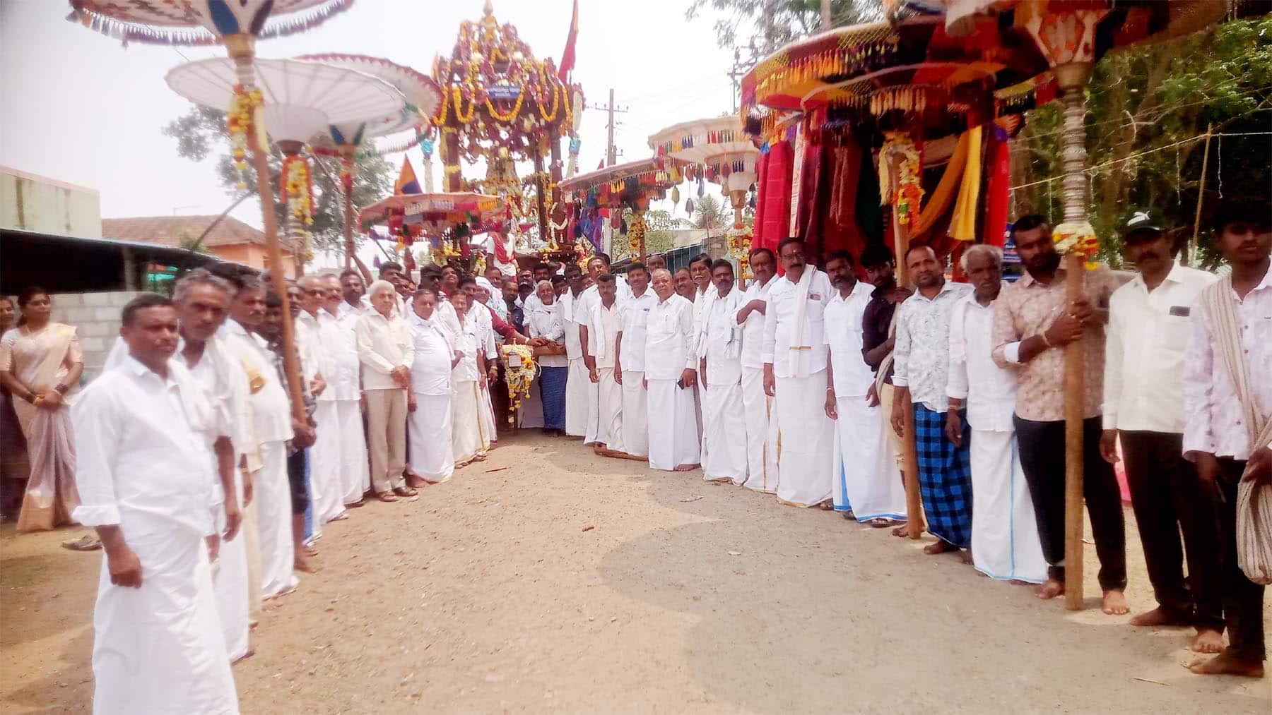 ದೇವರ ವಿಗ್ರಹಕ್ಕೆ ಗಂಗೆ ಸ್ನಾನ ಮಾಡಿಸಿ, ವಿಶೇಷ ಪೂಜೆ ಸಲ್ಲಿಸಲಾಯಿತು. ಈ ನಡುವೆ ಭಕ್ತರಿಂದ ವಿವಿಧ ಸೇವಾ ಕಾರ್ಯಗಳು ಜರುಗಿತು. ವಾದ್ಯಗೋಷ್ಠಿಗಳು ಮೊಳಗಿದವು.ಗಂಗೆ ತಾಣದಿಂದ ದೇವರ ವಿಗ್ರಹವನ್ನು ಗ್ರಾಮದ ಪ್ರಮುಖ ಬೀದಿಗಳಲ್ಲಿ ಮೆರವಣಿಗೆ ನಡೆಸಲಾಯಿತು. ಸತ್ತಿಗೆ ಸುರಪಾಣಿ ಸೇರಿದಂತೆ ಇನ್ನಿತರ ಕಲಾ ಪ್ರಕಾರಗಳು ಭಾಗಿಯಾಗಿದ್ದವು. ನಂತರ ದೇವರಮೂರ್ತಿಯನ್ನು ದೇವಸ್ಥಾನದ ಬಳಿಗೆ ಮೆರವಣಿಗೆ ಮೂಲಕ ತರಲಾಯಿತು. ದಾರಿಯುದ್ದಕ್ಕೂ ಭಕ್ತ ರಿಂದ ವಿವಿಧ ಭಜನಾ ಕಾರ್ಯಕ್ರಮ ನಡೆಯಿತು.