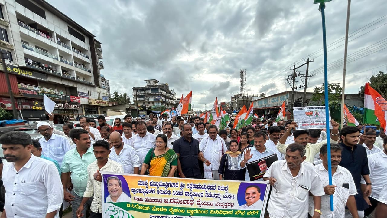 ಮುಖ್ಯಮಂತ್ರಿ ಸಿದ್ದರಾಮಯ್ಯ ಅವರ ವಿರುದ್ಧ ಪ್ರಾಸಿಕ್ಯೂಷನ್ಗೆ ಅನುಮತಿ ನೀಡಿದ ರಾಜ್ಯಪಾಲರ ನಡೆ ಖಂಡಿಸಿ ಬಂಟ್ವಾಳ ಮತ್ತು ಪಾಣೆಮಂಗಳೂರು ಬ್ಲಾಕ್ ಕಾಂಗ್ರೆಸ್ ವತಿಯಿಂದ ಸೋಮವಾರ ಬಿಸಿರೋಡಿನಲ್ಲಿ ಬೃಹತ್ ಪ್ರತಿಭಟನಾ ಸಭೆ ನಡೆಯಿತು.
