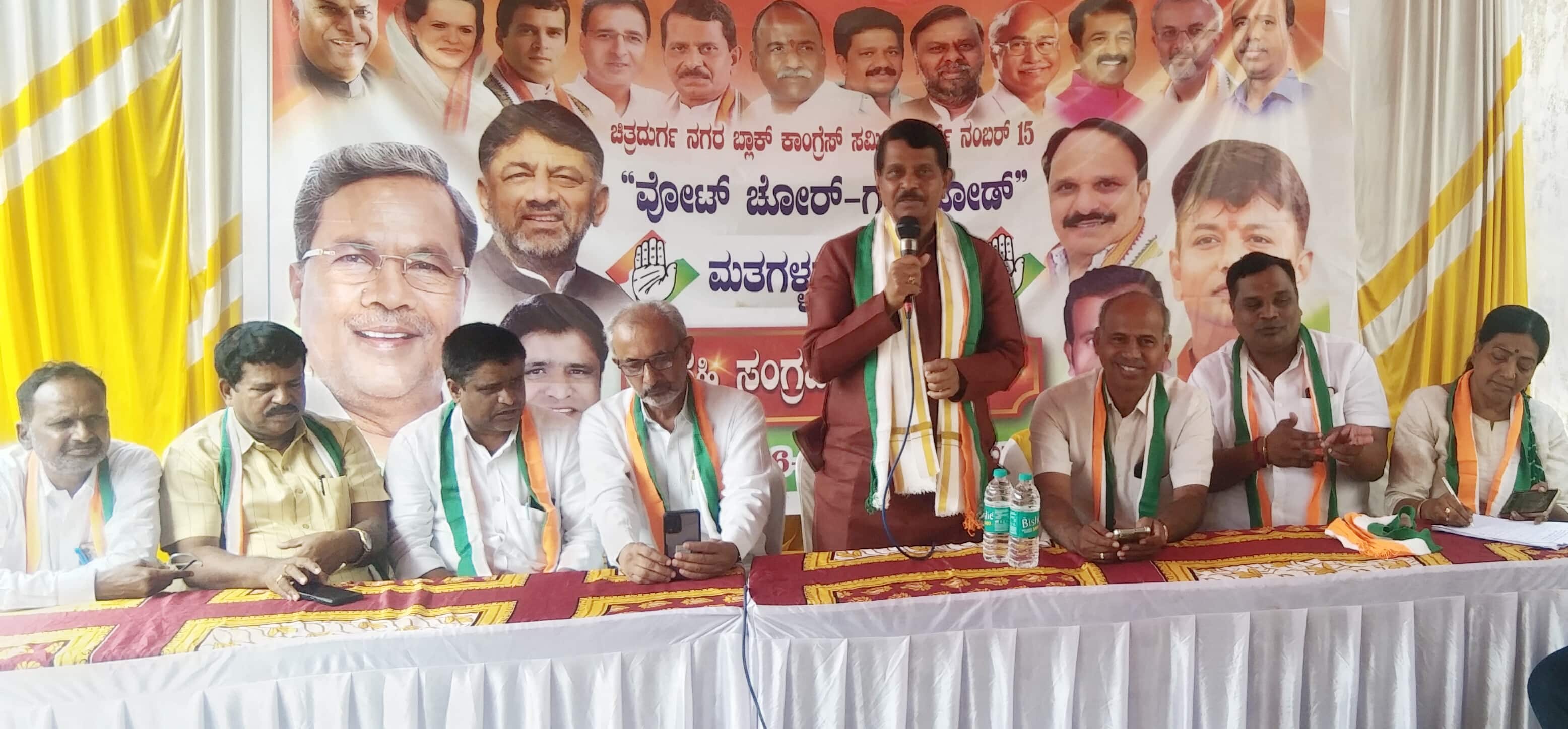 ಬಿಜೆಪಿ ಸೇರಿದಂತೆ ಕೋಮುವಾದಿ ಪಕ್ಷಗಳು ದೇಶದಲ್ಲಿ ಸರ್ವಾಧಿಕಾರಿ ಅಧಿಕಾರಕ್ಕೋಸ್ಕರ ಚುನಾವಣಾ ಆಯೋಗದ ಮೂಲಕ ನಡೆಸುತ್ತಿರುವ ಮತಗಳ್ಳತನ ನಿಲ್ಲಬೇಕು. ನಿಷ್ಪಕ್ಷಪಾತವಾಗಿ ಚುನಾವಣೆಗಳನ್ನು ನಡೆಸಬೇಕೆಂಬ ಉದ್ದೇಶದಿಂದ ಯನ್ನು ಕಾಂಗ್ರೆಸ್ ಪಕ್ಷ ದೇಶದಾದ್ಯಂತ ಕಳುವಿನ (ಚೋರಿ) ವಿರುದ್ಧ ಚಳುವಳಿ ಮಾದರಿಯಲ್ಲಿ ಅಭಿಯಾನವನ್ನು ನಡೆಸುತ್ತಿದೆ ಎಂದರು.ಚುನಾವಣೆಗಳಲ್ಲಿ ಮತಗಳವು ಮುಂದುವರೆದಲ್ಲಿ ಪ್ರಜಾಪ್ರಭುತ್ವ ಇರಲ್ಲ ಎಂಬುದನ್ನು ಮನವರಿಕೆ ಮಾಡಿಕೊಡಲಾಗುತ್ತದೆ. ಸಾರ್ವತ್ರಿಕ ಚುನಾವಣೆಗಳಲ್ಲಿ ಪ್ರಜಾಪ್ರಭುತ್ವ ಗೆಲ್ಲಬೇಕು. ಮತಗಳ್ಳತನದ ಮೂಲಕ ಜನಾದೇಶ ಕಗೊಲೆಯಾಗುತ್ತಿದೆ. ಇಂತಹ ಕೃತ್ಯದ ವಿರುದ್ಧ ರಾಹುಲ್ ಗಾಂಧಿ ಅವರು ಜನಜಾಗೃತಿಯ ಚಳುವಳಿ ನಡೆಸುತ್ತಿದ್ದಾರೆ. ಸಾಂವಿಧಾನಿಕ ಸ್ವಾಯತ್ತ ಸಂಸ್ಥೆಯಾಗಿರುವ ಚುನಾವಣಾ ಆಯೋಗವನ್ನು ಪ್ರತಿಯೊಬ್ಬ ಮತದಾರರು ತಮ್ಮ ಮತದ ಹಕ್ಕನ್ನು ಕದಿಯಲು, ಕಸಿಯಲು ಅವಕಾಶ ನೀಡದಂತೆ ಎಚ್ಚರಿಸಬೇಕು.ಸರ್ವಾಧಿಕಾರಿ ಧೋರಣೆಯುಳ್ಳವರ ಕೈಗೆ ಅಧಿಕಾರ ಕೊಟ್ಟರೆ ಜನರ ಹಕ್ಕು ಮತ್ತು ವಾಕ್ ಸ್ವಾತಂತ್ರ್ಯದ ಹರಣವಾಗುತ್ತದೆ ಎಂದು ಚಂದ್ರಪ್ಪ ಹೇಳಿದರು.
