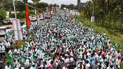 ಮೈಸೂರು ಚಲೋ 7ನೇ ದಿನದ ಪಾದಯಾತ್ರೆ ಮಂಡ್ಯ ಜಿಲ್ಲೆಯಿಂದ ಮೈಸೂರು ಜಿಲ್ಲೆಗೆ ಪ್ರವೇಶವಾಗುತ್ತಿದ್ದಂತೆ ಜೆಡಿಎಸ್ ಯುವ ಘಟಕದ ಅಧ್ಯಕ್ಷ ನಿಖಿಲ್ ಕುಮಾರಸ್ವಾಮಿ ಈಡುಗಾಯಿ ಒಡೆದು ತಲೆ ಬಾಗಿ ಹೆದ್ದಾರಿಗೆ ನಮಸ್ಕರಿಸಿದರು. ಪಾದಯಾತ್ರೆ ವೇಳೆ ಜೆಡಿಎಸ್ ಅಭಿಮಾನಿ ಯುವಕರು ನಿಖಿಲ್ ಭಾವಚಿತ್ರವನ್ನು ತಮ್ಮ ಎದೆ ಮೇಲೆ ಟ್ಯಾಟೂ ಹಾಕಿಸಿಕೊಂಡು ಗಮನ ಸೆಳೆದರು.