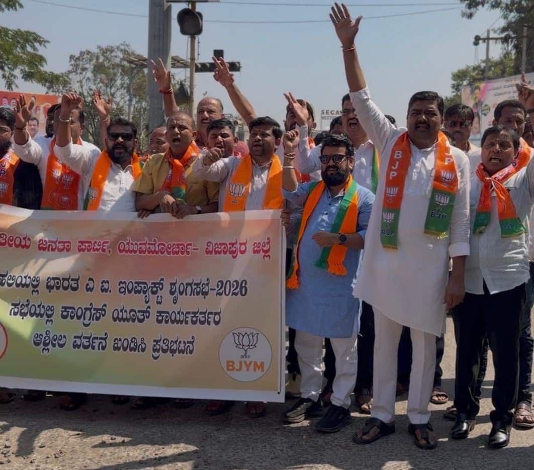 ಎಐ ಶೃಂಗಸಭೆಗೆ ಅಸಂಬದ್ಧವಾಗಿ ಅಡ್ಡಿಪಡಿಸಿದ ಕಾಂಗ್ರೆಸ್ ನಡೆ ಖಂಡಿಸಿ ಬಿಜೆಪಿ ಯುವ ಮೋರ್ಚಾ ಕಾರ್ಯಕರ್ತರು ಪ್ರತಿಭಟನೆ ನಡೆಸಿ, ಜಿಲ್ಲಾ ಕಾಂಗ್ರೆಸ್ ಕಚೇರಿಗೆ ಮುತ್ತಿಗೆ ಹಾಕಲು ಯತ್ನಿಸಿದರು. ಕಾಂಗ್ರೆಸ್ ಕಾರ್ಯಾಲಯಕ್ಕೆ ಮುತ್ತಿಗೆ ಹಾಕಲು ಅಣಿಯಾಗುತ್ತಿದ್ದಂತೆ ನಗರದ ಕೋರ್ಟ್ ಸರ್ಕಲ್ ಬಳಿಯೇ ಬ್ಯಾರಿಕೇಡ್ ಹಾಕಿ ತಡೆದ ಪೊಲೀಸ್ ಅಧಿಕಾರಿಗಳು, 50ಕ್ಕೂ ಹೆಚ್ಚು ಕಾರ್ಯಕರ್ತರನ್ನು ಕೆಲಕಾಲ ವಶಕ್ಕೆ ಪಡೆದು ನಂತರ ಬಿಡುಗಡೆಗೊಳಿಸಿದರು.ಬಿಜೆಪಿ ಎಸ್ಸಿ ಮೋರ್ಚಾ ರಾಜ್ಯ ಪ್ರಧಾನ ಕಾರ್ಯದರ್ಶಿ ಉಮೇಶ ಕಾರಜೋಳ ಮಾತನಾಡಿ, ಕಾಂಗ್ರೆಸ್ ಕಾರ್ಯಕರ್ತರ ಈ ನಡೆ ರಾಷ್ಟ್ರದ್ರೋಹಕ್ಕೆ ಸಮಾನವಾಗಿದೆ. ರಾಷ್ಟ್ರದ ಘನತೆಯನ್ನು ಹಾಳು ಮಾಡುವ ದುಷ್ಟ ಬುದ್ಧಿ ಹೊಂದಿರುವ ಕಾಂಗ್ರೆಸ್ ನಾಯಕರಿಗೆ ಜನರೇ ತಕ್ಕ ಪಾಠ ಕಲಿಸಲಿದ್ದಾರೆ. ಅಂತಾರಾಷ್ಟ್ರೀಯ ಮಟ್ಟದಲ್ಲಿ ಕಾಂಗ್ರೆಸ್ ಪಕ್ಷ ಭಾರತ ಮಾನ ಹರಾಜು ಹಾಕುವ ಪ್ರಯತ್ನ ಮಾಡುವ ಮೂಲಕ ಭಾರತದ ಸಾಂಸ್ಕೃತಿಕತೆ ಹಾಗೂ ತಾಂತ್ರಿಕತೆಯನ್ನೂ ಸಹ ಅಪಮಾನ ಮಾಡಿದೆ ಎಂದು ಆಕ್ರೋಶ ವ್ಯಕ್ತಪಡಿಸಿದರು.