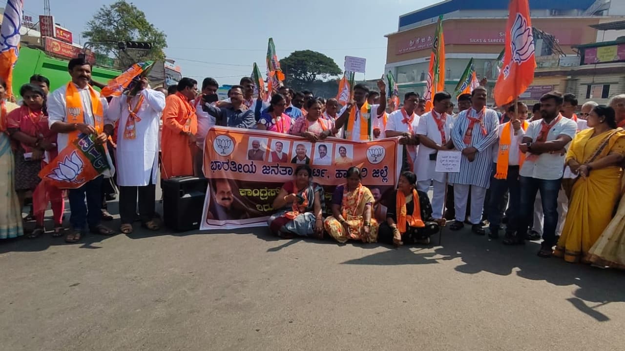 ಮಾಜಿ ಶಾಸಕ ವಿರೂಪಾಕ್ಷಪ್ಪ ಬಳ್ಳಾರಿ ಮಾತನಾಡಿ, ಕಾಂಗ್ರೆಸ್ ವರಿಷ್ಠರು ಲೋಕಸಭಾ ಚುನಾವಣೆಗೆ ರಾಜ್ಯದ ಕಾಂಗ್ರೆಸ್ ಸರ್ಕಾರದ ಮೂಲಕ ಹಣವನ್ನು ಸಂಗ್ರಹಿಸುವ ಪ್ರಯತ್ನ ಮಾಡುತ್ತಿದ್ದು, ಸುಮಾರು ೫೦೦೦ ಕೋಟಿ ಸಂಗ್ರಹಿಸಿ ಲೋಕಸಭಾ ಚುನಾವಣೆಗೆ ಕೊಡುವಂತೆ ಮುಖ್ಯಮಂತ್ರಿ ಮತ್ತು ಉಪಮುಖ್ಯಮಂತ್ರಿ, ಎಲ್ಲ ಮಂತ್ರಿಗಳಿಗೆ ಸೂಚನೆ ನೀಡಿರುವ ಬಗ್ಗೆ ಮಾಹಿತಿ ಬಂದಿದೆ. ರಾಜ್ಯದ ಕಾಂಗ್ರೆಸ್ ಸರ್ಕಾರ ಜನರ ಲೂಟಿ ಹೊಡೆಯುವುದನ್ನು ಬಿಟ್ಟು ಜನರ ಸಮಸ್ಯೆಗಳಿಗೆ ಸ್ಪಂದಿಸಬೇಕೆಂದು ಆಗ್ರಹಿಸಿದರು.ಮುಖಂಡ ಗವಿಸಿದ್ದಪ್ಪ ದ್ಯಾಮಣ್ಣನವರ ಮಾತನಾಡಿದರು. ಈ ವೇಳೆ ಜಿಲ್ಲಾ ಪ್ರಧಾನ ಕಾರ್ಯದರ್ಶಿಗಳಾದ ಶಶಿಧರ ಹೊಸಳ್ಳಿ, ರುದ್ರೇಶ ಚಿನ್ನಣ್ಣನವರ, ಪ್ರಮುಖರಾದ ಬೋಜರಾಜ ಕರೂದಿ, ಪಾಲಕ್ಷಗೌಡ ಪಾಟೀಲ, ಡಾ. ಬಸವರಾಜ ಕೆಲಗಾರ, ಕೆ. ಶಿವಲಿಂಗಪ್ಪ, ಸಂತೋಷ ಅಲದಕಟ್ಟಿ, ಶಿವಾನಂದ ಮ್ಯಾಗೇರಿ, ಶಿವಕುಮಾರ ತಿಪ್ಪಶೆಟ್ಟಿ, ಹಾಲೇಶ ಜಾಧವ, ಬಸವರಾಜ ಕಳಸೂರ, ನೀಲಪ್ಪ ಚಾವಡಿ, ಅಲ್ಲಾಭಕ್ಷ ತಿಮ್ಮಾಪೂರ, ನಂಜುಂಡೇಶ ಕಳ್ಳೇರ, ಜಗದೀಶ ಬಸೆಗಣ್ಣಿ, ನಿರಂಜನ ಹೇರೂರ, ಗಂಗಾಧರ ಮಾಗನೂರ, ನಿಂಗಾಚಾರ ಮಾಯಾಚಾರ, ಉಮೇಶ ಬಣಕಾರ, ಎನ್.ಎಂ. ಈಟೇರ, ನರಹರಿ ಕಟ್ಟಿ, ಸುಭಾಷ ಶಿರಗೇರಿ, ಜಗದೀಶ ಸವಣೂರ, ನಿಖಿಲ್ ಡೊಗ್ಗಳ್ಳಿ, ಮಾಲಿಂಗಸ್ವಾಮಿ ಹಿರೇಮಠ, ಕರಬಸಪ್ಪ ಹಳದೂರ ಇತರರು ಇದ್ದರು.