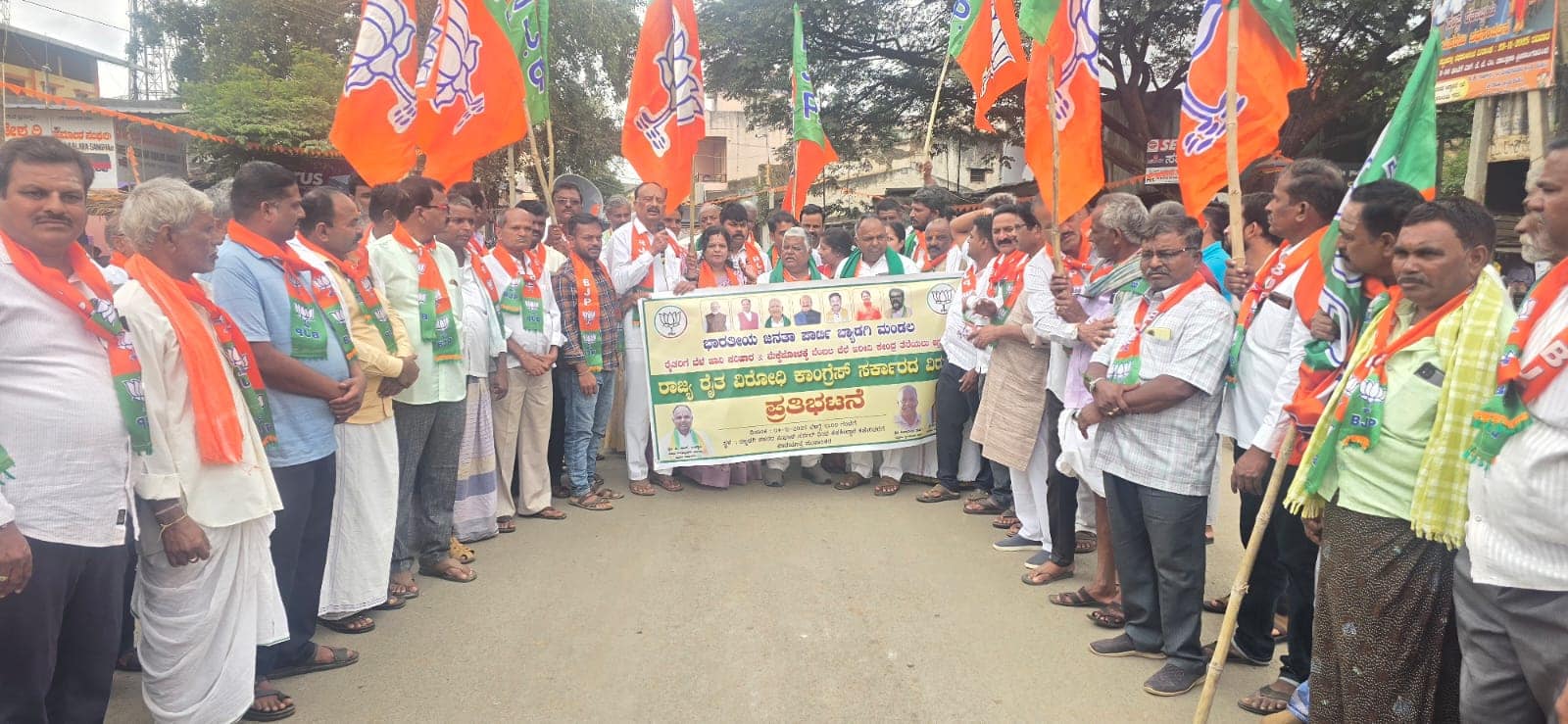 ಪಟ್ಟಣದ ಸುಭಾಸ್ ಸರ್ಕಲ್ನಿಂದ ಆರಂಭವಾದ ಬೃಹತ್ ಪ್ರತಿಭಟನಾ ಮೆರವಣಿಗೆಯು ಮೋಟೆಬೆನ್ನೂರು ರಸ್ತೆ ಮೂಲಕ ಸಾಗಿ, ತಹಸೀಲ್ದಾರ್ ಕಚೇರಿ ತಲುಪಿತು. ಕಾಂಗ್ರೆಸ್ ಸರ್ಕಾರದ ರೈತ ವಿರೋಧಿ ನೀತಿ ಖಂಡಿಸಿ ಮೆರವಣಿಗೆಯುದ್ದಕ್ಕೂ ಘೋಷಣೆಗಳನ್ನು ಕೂಗಿದರು.ಈ ವೇಳೆ ಮಾತನಾಡಿದ ಮಾಜಿ ಶಾಸಕ ಹಾಗೂ ಬಿಜೆಪಿ ಜಿಲ್ಲಾಧ್ಯಕ್ಷ ವಿರೂಪಾಕ್ಷಪ್ಪ ಬಳ್ಳಾರಿ, ರಾಜ್ಯದಲ್ಲಿ ಕಾಂಗ್ರೆಸ್ ಅಧಿಕಾರಕ್ಕೆ ಬಂದ ದಿನದಿಂದಲೇ ರೈತ ವಿರೋಧಿ ಧೋರಣೆ ತಳೆಯುತ್ತಾ ಬಂದಿದೆ. ನಾವು ನೀಡುತ್ತಿದ್ದ ₹4 ಸಾವಿರ ಸಹಾಯಧನ ಸ್ಥಗಿತಗೊಳಿಸಲಾಗಿದೆ. ರಾಜ್ಯ ನೀರಾವರಿ ಯೋಜನೆಗಳಿಗೆ ಹಣಕಾಸಿನ ನೆರವು ನೀಡಿಲ್ಲ, ಹಣವನ್ನು ಕೇವಲ ಅರ್ಜಿ ಸಲ್ಲಿಸಿದವರಿಗೆ ಮಾತ್ರ ಬೆಳೆಹಾನಿ ನೀಡಲಾಗುತ್ತಿದೆ. ಹಾಗಿದ್ದರೆ ಇನ್ನುಳಿದವರ ರೈತರಲ್ಲವೇ? ಅವರಿಗೆ ಹಾನಿಯಾಗಿಲ್ಲವೇ? ಕೂಡಲೇ ರಾಜ್ಯದ ಎಲ್ಲ ರೈತರಿಗೂ ಬೆಳೆಹಾನಿ ಹಣ ನೀಡಬೇಕು ಎಂದು ಆಗ್ರಹಿಸಿದರು.