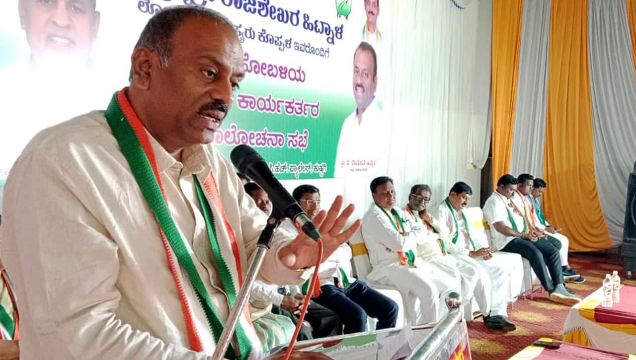 ಪಟ್ಟಣದ ಪಿಸಿಎಚ್ ಪ್ಯಾಲೇಸ್ ಸಭಾಂಗಣದಲ್ಲಿ ಬ್ಲಾಕ್ ಕಾಂಗ್ರೆಸ್ ಸಮಿತಿಯಿಂದ ನಡೆದ ಕುಷ್ಟಗಿ ಹೋಬಳಿಯ ಕಾಂಗ್ರೆಸ್ ಕಾರ್ಯಕರ್ತರ ಸಮಾಲೋಚನೆ ಸಭೆಯಲ್ಲಿ ಭಾಗವಹಿಸಿ ಮಾತನಾಡಿದರು.ಬಿಜೆಪಿಯವರು ಪಕ್ಷ ಕಟ್ಟುವಲ್ಲಿ ಮಾತ್ರ ನಿಸ್ಸಿಮರು, ಆದರೆ ನಮ್ಮ ಕಾಂಗ್ರೆಸ್ನವರು ದೇಶ ಕಟ್ಟುವ ಕೆಲಸ ಮಾಡಿದ್ದಾರೆ. ಜನಪರ ಯೋಜನೆ ಜಾರಿಗೆ ತಂದಿದ್ದಾರೆ ಎಂದ ಅವರು, ಬಿಜೆಪಿಯವರ ಯೋಜನೆಗಳು ಕೇವಲ ಪ್ರಚಾರಕ್ಕೆ ಸೀಮಿತವಾಗಿವೆ ಆದರಿಂದ ಯಾವುದೇ ಪ್ರಯೋಜನವಿಲ್ಲ ಎಂದರು.