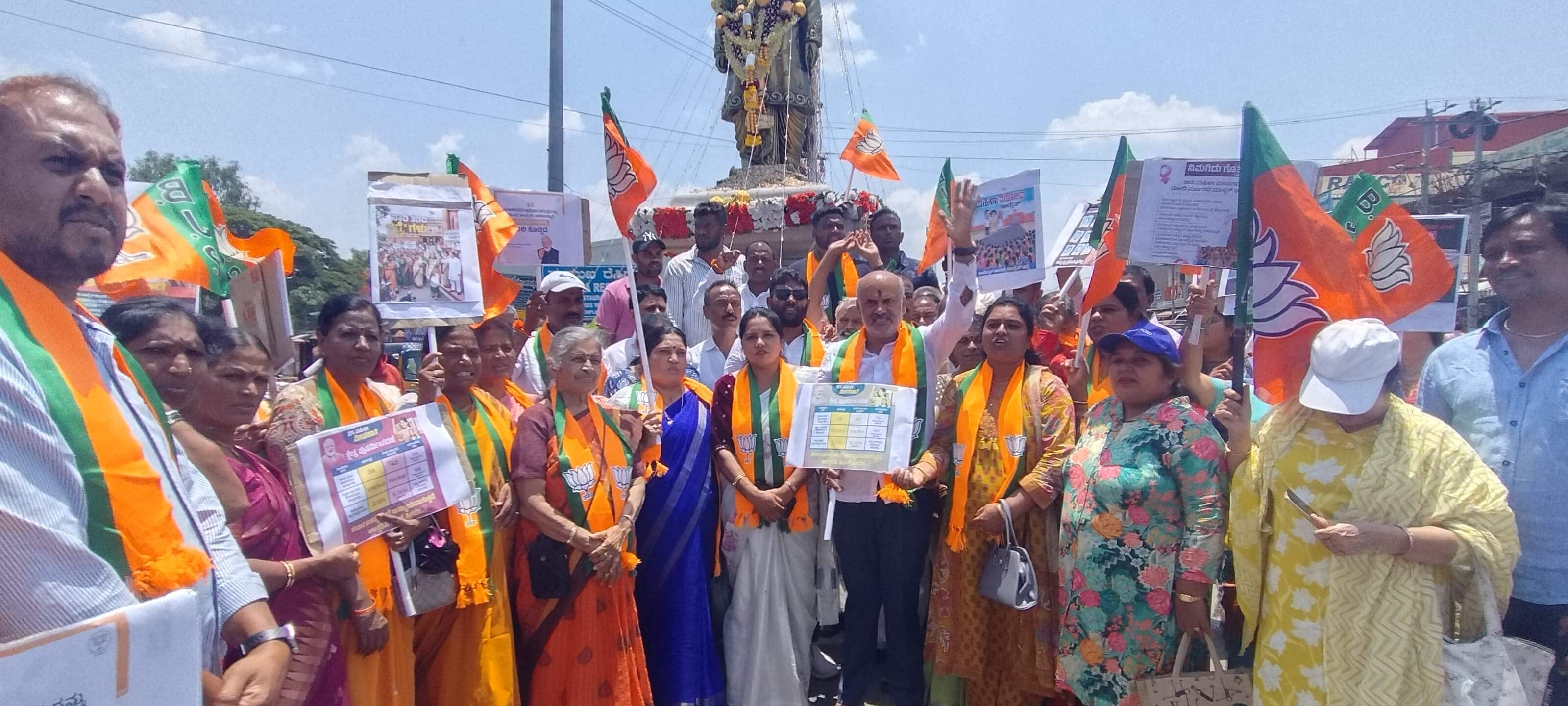 ಬಿಜೆಪಿ ಮುಖಂಡರಾದ ಬಿ.ಕೆ.ಚಂದ್ರಕಲಾ ಮಾತನಾಡಿ, 12ನೇ ಶತಮಾನದಲ್ಲಿ ವಿಶ್ವಗುರು ಬಸವಣ್ಣನವರು ಹಾಗೂ ಶರಣರು ಮಹಿಳೆಯರಿಗೆ ಸಮಾನ ಅವಕಾಶ ಕಲ್ಪಿಸಬೇಕು ಎಂಬ ನಿಟ್ಟಿನಲ್ಲಿ ಅನುಭವ ಮಂಟಪದಲ್ಲಿ ಅವರ ವಚನ ರಚನೆಗೆ ಮತ್ತು ಸಮಾನತೆ ನೀಡಿದ ನಿದರ್ಶನಗಳಿಗೆ. ಡಾ. ಬಿ. ಆರ್ ಅಂಬೇಡ್ಕರ್ ಅವರು ಕೂಡ ಮಹಿಳೆಯರಿಗೆ ಹೆಚ್ಚಿನ ಸಮಾನತೆಯನ್ನು ನೀಡಿದ ಕಾಲಘಟ್ಟದಲ್ಲಿ ಕಾಂಗ್ರೆಸ್ ತನ್ನ ಸ್ವಾರ್ಥಕ್ಕಾಗಿ ಮಹಿಳಾ ಮೀಸಲಾತಿಯಲ್ಲಿ ವಿರೋಧ ವ್ಯಕ್ತಪಡಿಸಿರುವುದು ನಾಚಿಕೆಗೇಡಿತನ. ಮುಂದಿನ ದಿನದಲ್ಲಿ ಯಾವ ಕಾರಣಕ್ಕೂ ಮೀಸಲಾತಿಯನ್ನು ಕೈ ಬಿಡದೆ ಲೋಕಸಭೆಯಲ್ಲಿ ಅಂಗೀಕರಿಸಬೇಕು ಎಂದು ಆಗ್ರಹಿಸಿದರು.ಬಿಜೆಪಿ ಮಹಿಳಾ ತಾಲೂಕು ಅಧ್ಯಕ್ಷ ರೇಖಾ ಬಸವರಾಜು ಮಾತನಾಡಿ ಮಹಿಳೆ ಎಲ್ಲಾ ಕ್ಷೇತ್ರದಲ್ಲೂ ಕೂಡ ತನ್ನದೆಯಾದ ಛಾಪು ಮೂಡಿಸಿದ್ದಾಳೆ. ನರೇಂದ್ರ ಮೋದಿಯವರು ಸ್ತ್ರೀ ಸಮಾನತೆ ನೀಡಬೇಕು ಹಾಗೂ ಮಹಿಳಾ ಸಬಲೀಕರಣಕ್ಕೆ ಒತ್ತು ನೀಡಬೇಕೆಂದು ಮಹಿಳಾ ಮೀಸಲಾತಿ ಜಾರಿಗೆ ಮುಂದಾಗಿರುವುದು ಸ್ವಾಗತ, ಕಾಂಗ್ರೆಸ್ ತನ್ನ ನೀಚ ಬುದ್ಧಿಯನ್ನು ಬಿಟ್ಟು ಇಂತಹ ಮಸೂದೆಗೆ ಬೆಂಬಲ ನೀಡಬೇಕೆಂದು ಅಗ್ರಹಿಸಿದರು.ಈ ಸಂದರ್ಭದಲ್ಲಿ ತಾಲ್ಲೂಕು ಬಿಜೆಪಿ ಅಧ್ಯಕ್ಷ ಸಂಜು ಕೌರಿ, ಮುಖಂಡರಾದ ಸಿ.ಎಸ್. ಪ್ರಕಾಶ, ಅಡಗೂರು ಬಸವರಾಜ್, ಮೀನಾಕ್ಷಿ, ಲಕ್ಷ್ಮಿ, ಪ್ರಕಾಶ, ರಾಘವೇಂದ್ರ, ಮೋಹನ್ ಕುಮಾರ್, ರಮೇಶ್ ಮುಂತಾದವರು ಹಾಜರಿದ್ದರು.ಕಾಂಗ್ರೆಸ್ ವಿರುದ್ಧ ಬಿಜೆಪಿ ಮಹಿಳಾ ಘಟಕ ಪ್ರತಿಭಟನೆ