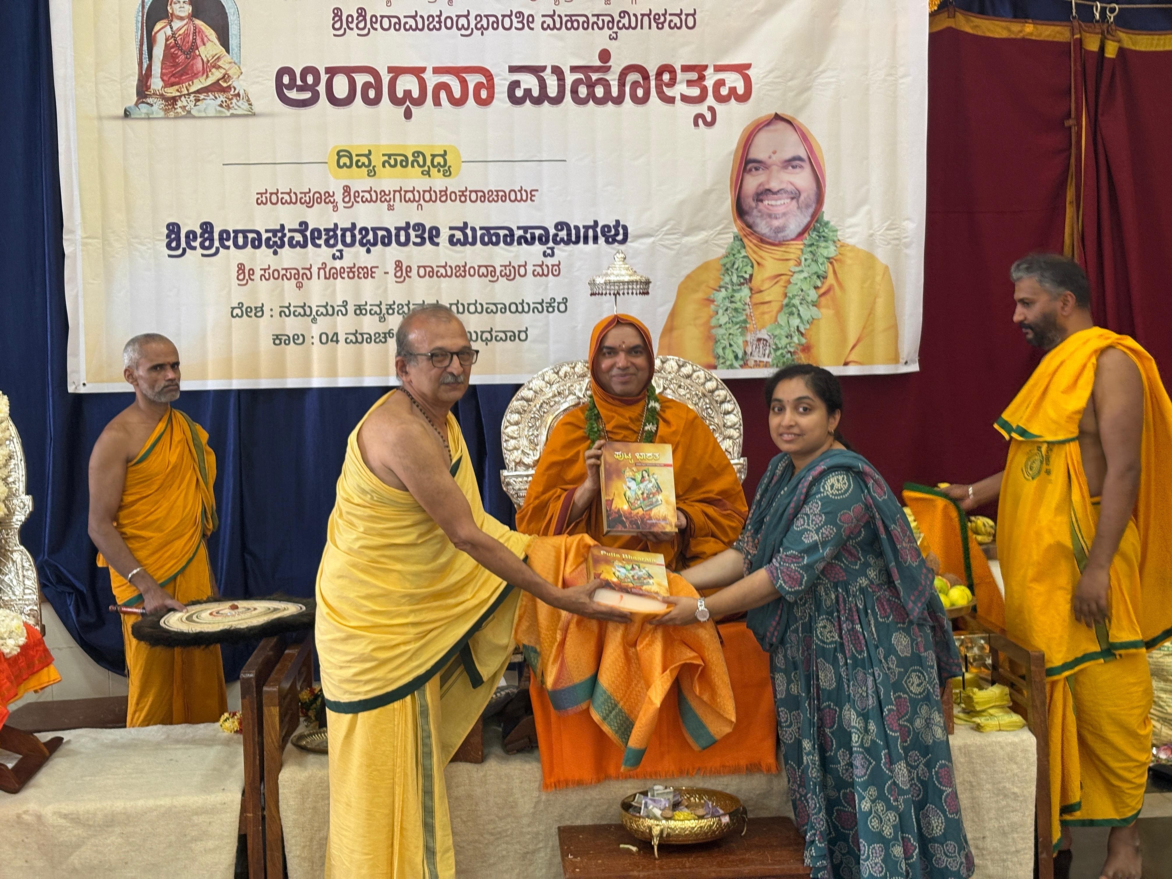 ಗುರುವಾಯನಕೆರೆ ಸನಿಹದ ಹವ್ಯಕಭವನದಲ್ಲಿ ಶ್ರೀ ರಾಮಚಂದ್ರಭಾರತೀ ಸ್ವಾಮೀಜಿಯವರ ಆರಾಧನಾ ಮಹೋತ್ಸವದ ಸಂದರ್ಭದಲ್ಲಿ ಪುಟ್ಟ ಭಾರತ ಪುಸ್ತಕಗಳ ಲೋಕಾರ್ಪಣೆಯ ಸಂದರ್ಭದಲ್ಲಿ ಮಠದ ಶಿಷ್ಯರಿಗೆ ಕರೆ ನೀಡಿದರು