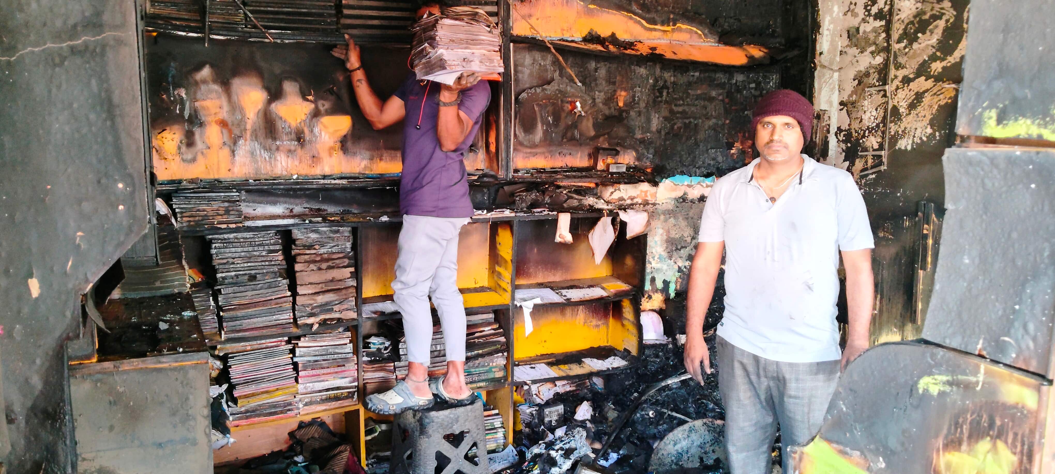 ವಿದ್ಯುತ್ ಶಾರ್ಟ್ ಸರ್ಕ್ಯೂಟ್ನಿಂದ ಬುಕ್ಸ್ಟಾಲ್ ಸಂಪೂರ್ಣ ಸುಟ್ಟು ಕರಕಲಾದ ಘಟನೆ ಪಟ್ಟಣದ ರಾಜಶ್ರೀ ಚಿತ್ರಮಂದಿರದ ಎದುರಿನ ಯುವರಾಜ್ ಬುಕ್ಸ್ಟಾಲ್ ಅಂಗಡಿಯಲ್ಲಿ ನಡೆದಿದೆ.