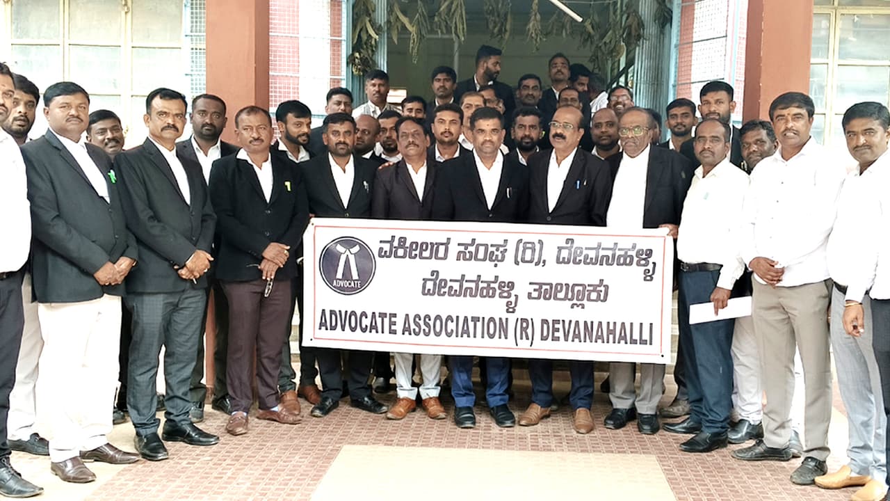 ದೇವನಹಳ್ಳಿಯ ನ್ಯಾಯಾಲಯದ ಮುಂದೆ ತಮ್ಮ ಸಹೋದ್ಯೋಗಿಗಳ ಜೊತೆಗೂಡಿ ಒಂದು ದಿನದ ಮಟ್ಟಿಗೆ ಕಲಾಪದಿಂದ ಹೊರಗುಳಿದು ಪ್ರತಿಭಟಿಸಿ ಅವರು ಮಾತನಾಡಿದರು.