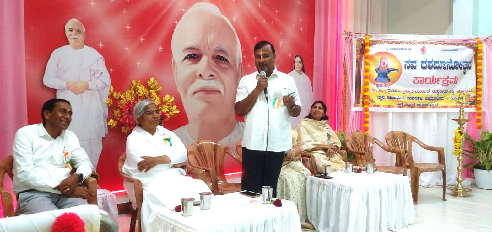 ಫೋಟೋನಗರದ ಬಸವನಹಳ್ಳಿ ಸಮೀಪ ಜ್ಞಾನ ಪ್ರಕಾಶ ಭವನದಲ್ಲಿ ಪ್ರಜಾಪಿತ ಬ್ರಹ್ಮಕುಮಾರಿ ಈಶ್ವರೀಯ ವಿವಿ ಸಹಯೋಗದಲ್ಲಿ ನಡೆದ ನವ ದಶಮಾನೋತ್ಸವದಲ್ಲಿ ಜಿಲ್ಲಾ ಗ್ಯಾರಂಟಿ ಪ್ರಾಧಿಕಾರದ ಅಧ್ಯಕ್ಷ ಎಂ.ಸಿ. ಶಿವಾನಂದಸ್ವಾಮಿ ಮಾತನಾಡಿದರು. ಬ್ರಹ್ಮಕುಮಾರಿ ಸಂಸ್ಥೆ ಜಿಲ್ಲಾ ಸಂಚಾಲಕಿ ಬಿ.ಕೆ. ಭಾಗ್ಯಲಕ್ಷ್ಮಿ, ಜಿಪಂ ಮಾಜಿ ಅಧ್ಯಕ್ಷೆ ರೇಖಾ ಹುಲಿಯಪ್ಪಗೌಡ, ನಂದಕುಮಾರ್, ಜಯಣ್ಣ ಮೊದಲಾದವರಿದ್ದರು.