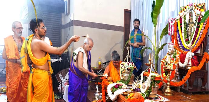 ಇಲ್ಲಿನ ಶ್ರೀ ಲಕ್ಷ್ಮೀ ವೆಂಕಟರಮಣ ದೇವಸ್ಥಾನಲ್ಲಿನ ಶ್ರೀ ಲಕ್ಷ್ಮಣಪೂರ್ವಜ: ಜಪ ಕೇಂದ್ರದಲ್ಲಿ ಶನಿವಾರ ಶ್ರೀ ಸಂಸ್ಥಾನ ಗೋಕರ್ಣ ಪರ್ತಗಾಳಿ ಜೀವೋತ್ತಮ ಮಠಾಧೀಶ ಶ್ರೀಮದ್ ವಿದ್ಯಾಧೀಶ ತೀರ್ಥ ಶ್ರೀಪಾದ ಒಡೆಯ ಸ್ವಾಮೀಜಿಯವರ ಮಠ ಪರಂಪರೆಯು 550 ವರ್ಷ ಪೂರ್ಣಗೊಳಿಸಿದ ಆಚರಣೆಯ ಪ್ರಯುಕ್ತ ಸಂಕಲ್ಪಿತ 550 ಕೋಟಿ ಶ್ರೀ ರಾಮ ನಾಮ ಜಪ ಅಭಿಯಾನವು 550 ದಿನ ಪೂರೈಸಿದ್ದು, ಅದರ ಮಂಗಲೋತ್ಸವ ಅಂಗವಾಗಿ ಶ್ರೀ ದೇವರ ಸನ್ನಿಧಿಯಲ್ಲಿ ವಾಯುಸ್ತುತಿ ಹವನ ನಡೆಯಿತು.