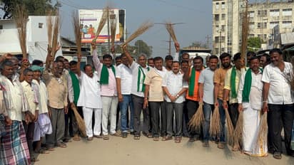 ಪಟ್ಟಣದ ಶಿಗ್ಲಿ ಕ್ರಾಸ್ ಹತ್ತಿರ ಪಾಳಾ- ಬಾದಾಮಿ ರಾಜ್ಯ ಹೆದ್ದಾರಿ ತಡೆದು ಪೊರಕೆಯಿಂದ ರಸ್ತೆಯಲ್ಲಿನ ಕಸ ಗುಡಿಸಿ ಪ್ರತಿಭಟನಾ ಸ್ಥಳಕ್ಕೆ ಹೋರಾಟಗಾರರು ಆಗಮಿಸಿದರು.ಈ ವೇಳೆ ಹೋರಾಟಗಾರರು ಮಾತನಾಡಿ, ಗೋವಿನಜೋಳ ಖರೀದಿ ಕೇಂದ್ರ ಆರಂಭಿಸುವಂತೆ ಆಗ್ರಹಿಸಿ ಕಳೆದ 13 ದಿನಗಳಿಂದ ಹೋರಾಟ ನಡೆಸುತ್ತಿದ್ದರೂ ಸರ್ಕಾರ ಇತ್ತ ಗಮನ ಹರಿಸಿಲ್ಲವೆಂದು ಆಕ್ರೋಶ ವ್ಯಕ್ತಪಡಿಸಿದ ರೈತ ಮುಖಂಡರು, ಪೊರಕೆ ಚಳವಳಿಯ ಮೂಲಕ ಎಚ್ಚರಿಕೆ ನೀಡಲಾಗಿದೆ.