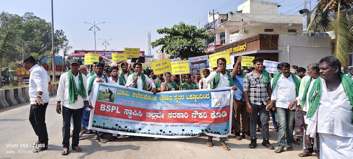 ಬಿಎಸ್ಪಿಎಲ್ಗೆ ಭೂಮಿ ಕಳೆದುಕೊಂಡು ೧೮ ವರ್ಷಗಳ ಆಗಿದೆ. ಸರ್ಕಾರವೇ ಕೆಐಡಿಬಿ ಮೂಲಕ ನಮ್ಮ ಭೂಮಿ ಸ್ವಾಧೀನ ಮಾಡಿಕೊಂಡು ಬಿಎಸ್ ಪಿಎಲ್ ಕಂಪನಿಗೆ ನೀಡಿದೆ. ಆದರೆ, ಇಷ್ಟು ವರ್ಷಗಳಾದರೂ ಕಾರ್ಖಾನೆ ಸ್ಥಾಪಿಸಿಲ್ಲ ಮತ್ತು ನಮಗೆ ಕೆಲಸ ನೀಡಿಲ್ಲ. ನ್ಯಾಯಾಲಯದಲ್ಲಿ ಪ್ರಕರಣ ಇದ್ದಿದ್ದರಿಂದ 2023 ವರೆಗೂ ಆಗಿರಿಲ್ಲ. ಆಗ ವ್ಯಾಜ್ಯ ಇತ್ಯರ್ಥವಾಗಿದ್ದರೂ ಪ್ರಾರಂಭಿಸಿಲ್ಲ. ಈಗ ಸಿಎಂ ಮೌಖಿಕ ಆದೇಶ ಮಾಡಿ ಕಾರ್ಖಾನೆ ಸ್ಥಾಪನೆ ನಿಲ್ಲಿಸಿದ್ದಾರೆ.ಇತ್ತ ಭೂಮಿಯೂ ಇಲ್ಲ, ಭೂಮಿ ಕಳೆದುಕೊಂಡಿರುವುದಕ್ಕೆ ಕಾರ್ಖಾನೆಯಲ್ಲಿ ಕೆಲಸವೂ ಇಲ್ಲದಂತೆ ರೈತರ ಮಕ್ಕಳು ನಿರುದ್ಯೋಗಿಗಳಾಗಿದ್ದಾರೆ. ಹೀಗಾಗಿ, ಸರ್ಕಾರ ಕೂಡಲೇ ಕಾರ್ಖಾನೆಯನ್ನಾದರೂ ಪ್ರಾರಂಭಿಸಲಿ ಅಥವಾ ಭೂಮಿ ಕಳೆದುಕೊಂಡ ರೈತರಿಗೆ ಸರ್ಕಾರಿ ನೌಕರಿಯನ್ನಾದರೂ ನೀಡಲಿ ಎಂದು ಆಗ್ರಹಿಸಿ ಪ್ರತಿಭಟನೆ ನಡೆಸಿದರು.
