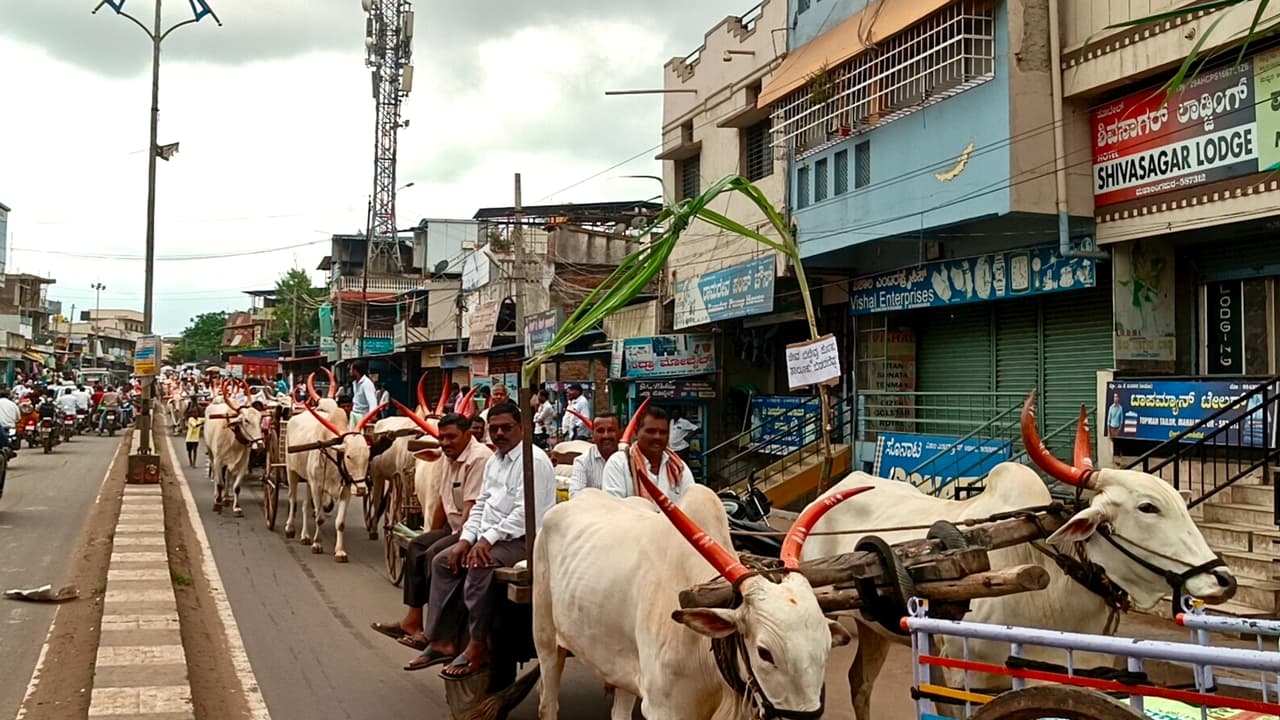 ಪಟ್ಟಣವನ್ನು ನೂತನ ತಾಲೂಕು ಕೇಂದ್ರವನ್ನಾಗಿಸಲು ಆಗ್ರಹಿಸಿ ಪಟ್ಟಣದ ಚನ್ನಮ್ಮ ವೃತ್ತದಲ್ಲಿ ತಾಲೂಕು ಹೋರಾಟ ಸಮಿತಿಯಿಂದ ಬುಧವಾರ ಎತ್ತಿನಬಂಡಿ ಮೆರವಣಿಗೆ ಮತ್ತು ಬಾರಕೋಲು ಚಳವಳಿ ನಡೆಯಿತು.ಪಟ್ಟಣದ ಎಪಿಎಂಸಿ ಗಣಪತಿ ದೇವಸ್ಥಾನದಿಂದ ಬಸವೇಶ್ವರ ವೃತ್ತ, ಡಬಲ್ ರೋಡ್, ನಡುಚೌಕಿ, ಜವಳಿಬಜಾರ, ಗಾಂಧಿ ವೃತ್ತದಿಂದ ಚನ್ನಮ್ಮ ವೃತ್ತದವರೆಗೆ ಎತ್ತಿನ ಬಂಡಿ ಮೆರವಣಿಗೆ ನಡೆಯಿತು. ಹಲವಾರು ರೈತರು ಎತ್ತಿನಬಂಡಿಗಳಲ್ಲಿ ಬಂದರೆ, ಸ್ಥಳೀಯ ಮತ್ತು ಸುತ್ತಮುತ್ತಲಿನ ಗ್ರಾಮಸ್ಥರು, ನಾಗರಿಕರು ಬಾರಕೋಲು ಹಿಡಿದು ಬೇಕೆ ಬೇಕು ತಾಲೂಕು ಬೇಕು, ಎಲ್ಲಿವರೆಗೂ ಹೋರಾಟ ತಾಲೂಕು ಆಗುವವರೆಗೂ ಹೋರಾಟ ಎಂದು ರಸ್ತೆ ಉದ್ದಕ್ಕೂ ಘೋಷಣೆ ಕೂಗಿ ಆಕ್ರೋಶ ವ್ಯಕ್ತಪಡಿಸಿದರು. ತಾಲೂಕು ಹೋರಾಟ ಸಮಿತಿಯವರು ನಿರಂತರವಾಗಿ ಪ್ರತಿಯೊಂದು ಹಳ್ಳಿಗಳಿಗೆ, ಸಂಘ ಸಂಸ್ಥೆಗಳಿಗೆ, ಎಲ್ಲ ಸಮುದಾಯಗಳಿಗೆ, ಮುಖಂಡರಿಗೆ, ಸಾರ್ವಜನಿಕರಿಗೆ ಭೇಟಿ ನೀಡಿ ಚಳವಳಿಗೆ ಮನವಿ ಮಾಡಿದ ಪರಿಣಾಮ ಹೋರಾಟಕ್ಕೆ ಸಾವಿರಾರು ಜನ ಬೆಂಬಲಿಸಿ, ತಾಲೂಕಿಗಾಗಿ ಆಗ್ರಹಿಸಿದರು.
