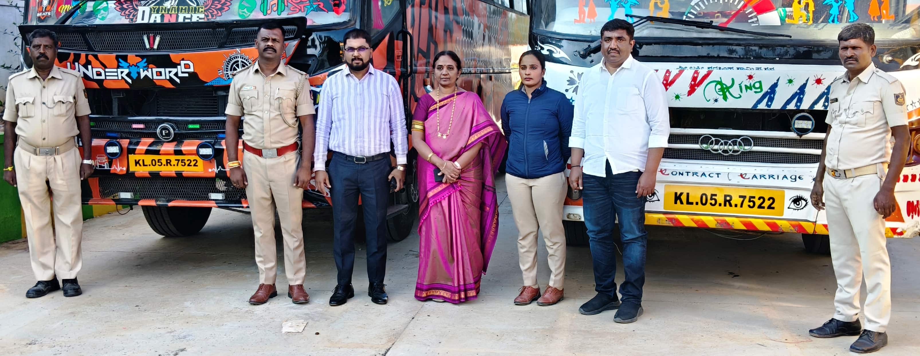 ೧೫ಕೆಜಿಎಫ್೩........ಒಂದೇ ಸಂಖ್ಯೆಯ ನಂಬರ್ ಪ್ಲೇಟ್ ಹೊಂದಿದ್ದ ಎರಡು ಬಸ್ಸುಗಳನ್ನು ಕೆಜಿಎಫ್ನ ಕೋಟಿಲಿಂಗೇಶ್ವರ ಬಳಿ ಆರ್ಟಿಒ ಅಧಿಕಾರಿಗಳು ವಶಪಡಿಸಿಕೊಂಡರು.ವಶಪಡಿಕೊಂಡಿರುವ ಜಂಟಿ ಸಾರಿಗೆ ಆಯುಕ್ತರಾದ ಗಾಯತ್ರಿದೇವಿ, ಕೆಜಿಎಫ್ ಎಆರ್ಟಿಒ ಗಜೇಂದ್ರಬಾಬು, ಬ್ರೆಕ್ ಇನ್ಸೆ÷್ಪಕ್ಟರ್ ಶ್ರೀನಿವಾಸಲು, ಪೂಜಾ ಹಾಗೂ ಇನ್ನಿತರ ಅಧಿಕಾರಿಗಳು