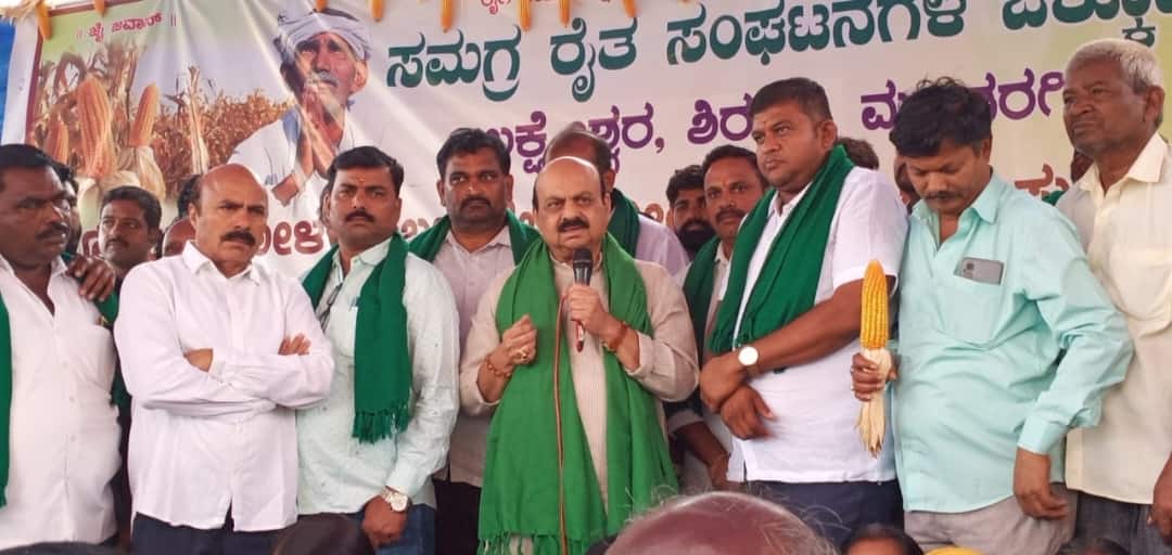 ಶನಿವಾರ ಪಟ್ಟಣದ ಶಿಗ್ಲಿ ಕ್ರಾಸ್ನಲ್ಲಿ ಸಮಗ್ರ ರೈತ ಸಂಘಟನೆಗಳ ಒಕ್ಕೂಟದ ವತಿಯಿಂದ ಬೆಂಬಲ ಬೆಲೆಯಲ್ಲಿ ಮೆಕ್ಕೆಜೋಳ ಖರೀದಿ ಕೇಂದ್ರ ಆರಂಭಿಸಲು ಆಗ್ರಹಿಸಿ ರೈತರು ನಡೆಸುತ್ತಿರುವ ಹೋರಾಟ ಸ್ಥಳಕ್ಕೆ ಭೇಟಿ ನೀಡಿ ಮಾತನಾಡಿದರು. ಬೆಂಬಲ ಬೆಲೆ ಯೋಜನೆ ಪರಿಣಾಮ ರೈತರಿಗೂ ಅನುಕೂಲವಾಗುತ್ತದೆ. ಖರೀದಿ ಮಾಡಿದ ಸರ್ಕಾರಕ್ಕೂ ನಷ್ಟವಾಗುವುದಿಲ್ಲ. ಕೇಂದ್ರ ಹಾಗೂ ರಾಜ್ಯ ಸರ್ಕಾರ ಸಂಘರ್ಷ ಮಾಡಿದರೆ ಇಬ್ಬರ ನಡುವೆ ಕೂಸು ಬಡವಾದಂತೆ. ರೈತರು ಯಾವುದೇ ಪಕ್ಷಕ್ಕೆ ಸೇರಿಲ್ಲ. ಎಲ್ಲ ಪಕ್ಷಗಳು ರೈತರಿಗೆ ಸೇರಿವೆ ಎಂದರು.ರಾಜ್ಯದ ರೈತರಿಗೆ ನ್ಯಾಯ: ಕಳೆದ ವರ್ಷ ರಾಜ್ಯದಲ್ಲಿ 15 ಲಕ್ಷ ಹೆಕ್ಟೇರ್ ಪ್ರದೇಶದಲ್ಲಿ 54 ಲಕ್ಷ ಟನ್ ಮೆಕ್ಕೆಜೋಳ ಬೆಳೆದಿತ್ತು. ಈ ವರ್ಷ 17 ಲಕ್ಷ ಹೆಕ್ಟೇರ್ ಪ್ರದೇಶದಲ್ಲಿ ಬೆಳೆದರೂ 54 ಲಕ್ಷ ಮೆಟ್ರಿಕ್ ಟನ್ ಬೆಳೆಯಲಾಗಿದೆ. ಈ ವರ್ಷ 2 ಲಕ್ಷ ಮೆಟ್ರಿಕ್ ಟನ್ ನಷ್ಟ ಆಗಿದೆ. ಇಂತಹ ಸಂದರ್ಭದಲ್ಲಿ ರೈತರನ್ನು ಉಳಿಸಲು ಏನು ಮಾಡಬೇಕು ಎಂಬುದನ್ನು ಯೋಚಿಸಬೇಕು. ಲಕ್ಷ್ಮೇಶ್ವರ ರೈತರ ಹೋರಾಟದಿಂದ ಇಡೀ ರಾಜ್ಯದ ರೈತರಿಗೆ ನ್ಯಾಯ ಸಿಗುವಂತಾಗಿದೆ. ರೈತರ ಒಗ್ಗಟ್ಟಿನ ಶಕ್ತಿ ಸರ್ಕಾರದ ಕಣ್ಣು ತೆರೆಸಿದೆ ಎಂದರು.