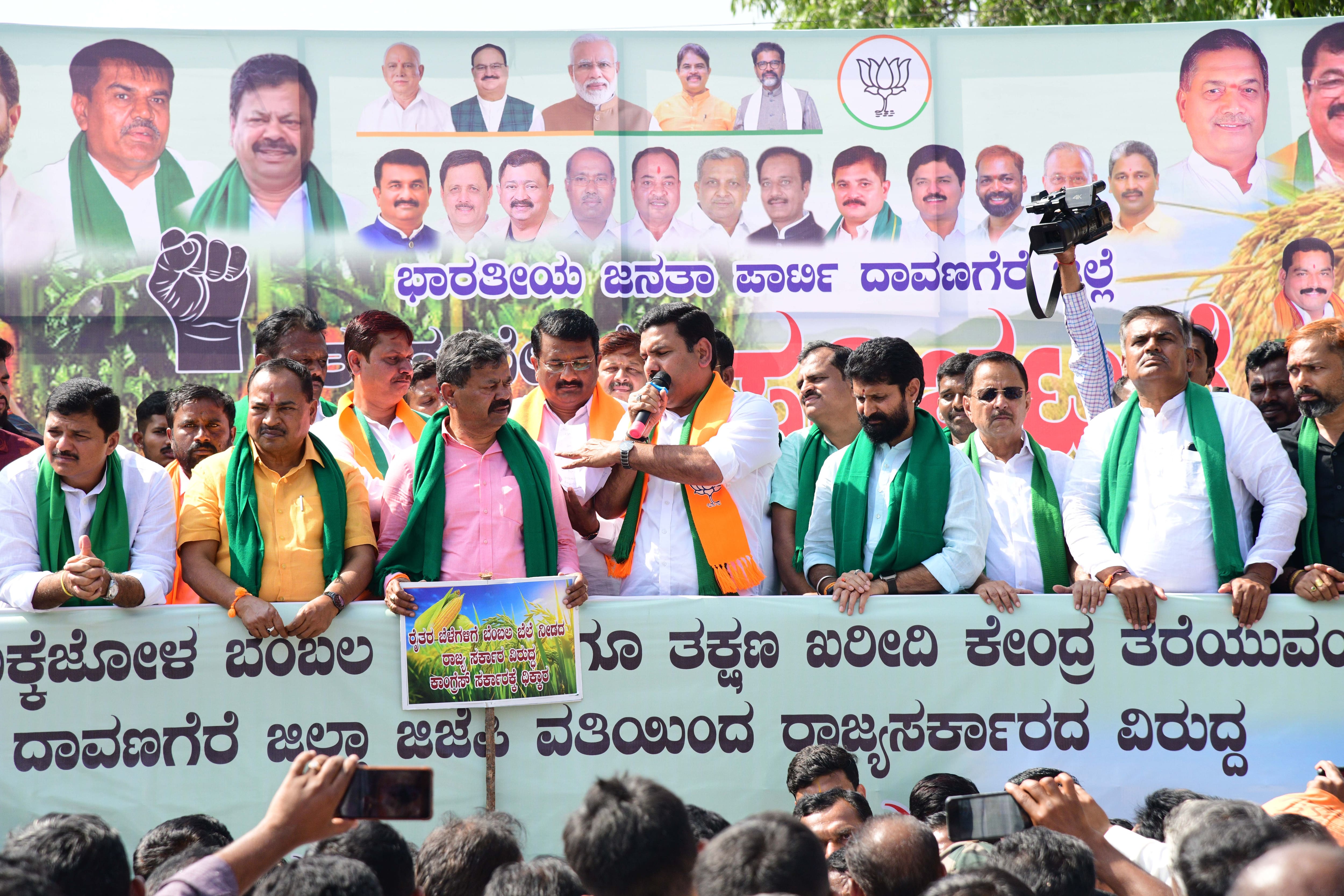 ದರೆ, ಅದೇ ಕೃಷಿ ಸಚಿವರು ದೆಹಲಿಯಲ್ಲಿ ಬೀಡು ಬಿಟ್ಟಿದ್ದಾರೆ. ರೈತರ ಸಮಸ್ಯೆಗೆ ತಕ್ಷಣ ಪರಿಹಾರ ನೀಡಬೇಕೆಂಬುದೇ ನಮ್ಮ ಮುಖ್ಯಬೇಡಿಕೆ. ರಾಜ್ಯ ಸರ್ಕಾರದ ವಿರುದ್ದ ರಾಜ್ಯದ 224 ಕ್ಷೇತ್ರಗಳಲ್ಲೂ ನ.27, 28ಕ್ಕೆ ಹೋರಾಟಕ್ಕೆ ಕರೆ ನೀಡಲಾಗಿದೆ. ಜ.1,2ರಂದು ರಾಜ್ಯದ ಎಲ್ಲಾ ಜಿಲ್ಲಾ ಕೇಂದ್ರದಲ್ಲೂ ಬಿಜೆಪಿ ರೈತ ಮೋರ್ಚಾ ಹೋರಾಟ ನಡೆಸಲಿದೆ ಎಂದು ಹೇಳಿದರು.ಎಂಎಲ್ಸಿ ಸಿ.ಟಿ.ರವಿ, ಮಾಜಿ ಸಚಿವರಾದ ಎಂ.ಪಿ.ರೇಣುಕಾಚಾರ್ಯ, ರೈತ ಮೋರ್ಚಾ ರಾಜ್ಯಾಧ್ಯಕ್ಷ ನಡಹಳ್ಳಿ, ಮಾಜಿ ಶಾಸಕರಾದ ಮಾಡಾಳ ವಿರುಪಾಕ್ಷಪ್ಪ, ಎಸ್.ವಿ.ರಾಮಚಂದ್ರ, ಎಂ.ಬಸವರಾಜ ನಾಯ್ಕ, ವಿಪ ಮಾಜಿ ಮುಖ್ಯ ಸಚೇತಕ ಡಾ.ಎ.ಎಚ್.ಶಿವಯೋಗಿಸ್ವಾಮಿ, ಮಾಡಾಳ ಮಲ್ಲಿಕಾರ್ಜುನ, ಲೋಕಿಕೆರೆ ನಾಗರಾಜ, ಬಿ.ಜಿ.ಅಜಯಕುಮಾರ, ಚಂದ್ರಶೇಖರ ಪೂಜಾರ, ಬಿಜೆಪಿ ಜಿಲ್ಲಾಧ್ಯಕ್ಷ ರಾಜಶೇಖರ ನಾಗಪ್ಪ, ಪಿ.ಸಿ.ಶ್ರೀನಿವಾಸ ಭಟ್, ಧನಂಜಯ ಕಡ್ಲೇಬಾಳ್, ಅನಿಲಕುಮಾರ ನಾಯ್ಕ, ಅಣ್ಣೇಶ, ಮಹೇಶ ಪಲ್ಲಾಗಟ್ಟಿ, ಜಿಪಂ ಮಾಜಿ ಅಧ್ಯಕ್ಷೆ ಜಯಲಕ್ಷ್ಮಿ ಮಹೇಶ, ಎಚ್.ಸಿ.ಜಯಮ್ಮ, ನೀತು, ದಾಕ್ಷಾಯಣಮ್ಮ, ಅಶ್ವಿನಿ, ಗೌತಮ್ ಜೈನ್ ಅನೇಕರು ಇದ್ದರು.