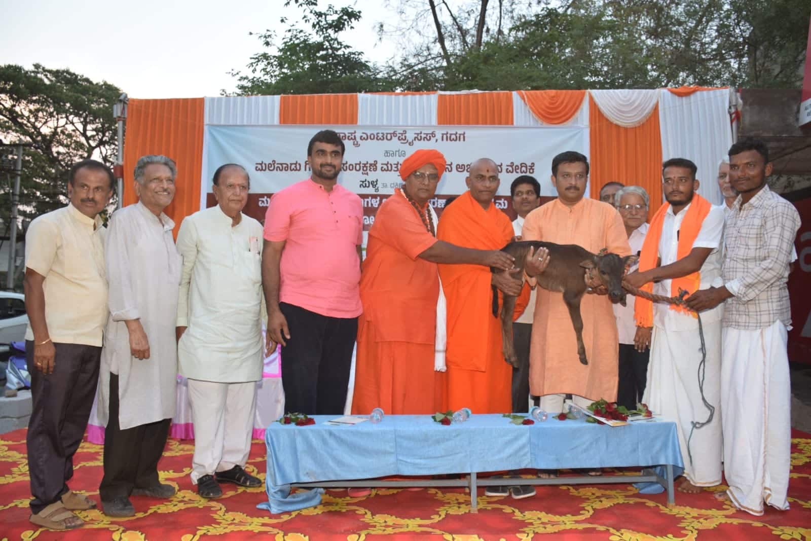 ಗದಗ: ಸ್ವರಾಷ್ಟ್ರ ಎಂಟರ್ಪ್ರೈಸೆಸ್ ಹಾಗೂ ಮಂಗಳೂರಿನ ಮಲ್ನಾಡ್ ಗಿಡ್ಡ ಸಂರಕ್ಷಣಾ ಮತ್ತು ಸಂವರ್ಧನ ಅಭಿಯಾನ ಸಂಸ್ಥೆಯಿಂದ ಗೋದಾನ, ಮಲೆನಾಡು ಗಿಡ್ಡ ತಳಿ ಹಸುಗಳ ಉಚಿತ ವಿತರಣಾ ಕಾರ್ಯಕ್ರಮ ಮತ್ತು ಗದಗ ಜಿಲ್ಲೆಯ ಗೋ ರಕ್ಷಕರಿಗೆ ಸನ್ಮಾನ ಸಮಾರಂಭ ಶನಿವಾರ ಸಂಜೆ ನಗರದಲ್ಲಿ ಜರುಗಿತು.