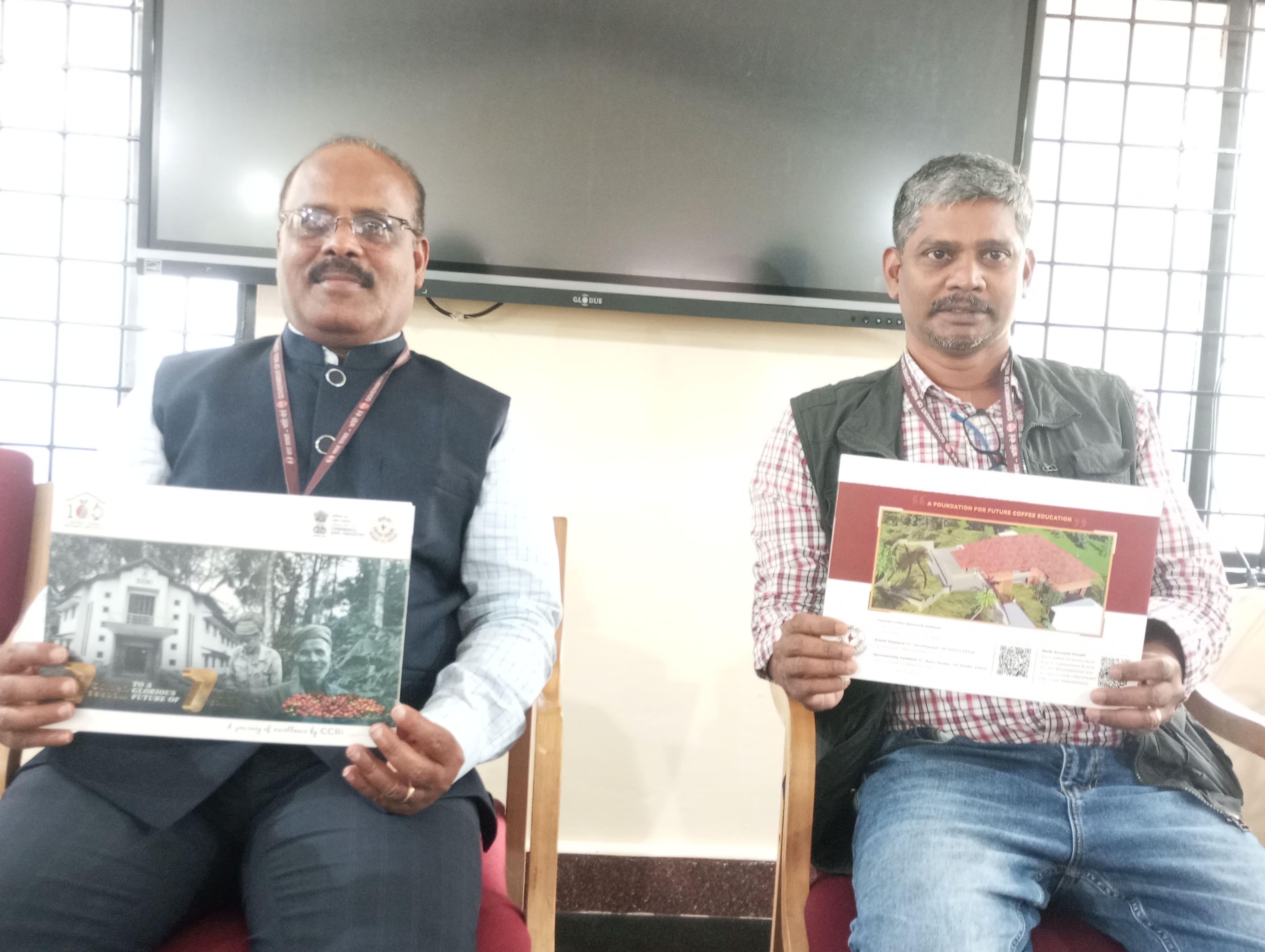 ಕೇಂದ್ರೀಯ ಕಾಫಿ ಸಂಶೋಧನಾ ಕೇಂದ್ರದಲ್ಲಿ ಡಿ.20ರಿಂದ 22ವರೆಗೆ ನಡೆಯಲಿರುವ ಶತಮಾನೋತ್ಸವ ಸಮಾರಂಭದ ಮಾಹಿತಿಗಳ ಪುಸ್ತಕಗಳನ್ನು ಸಂಶೋಧನಾ ನಿರ್ದೇಶಕ ಡಾ. ಎಂ.ಸೆಂಥಿಲ್ಕುಮಾರ್ ಬಿಡುಗಡೆಗೊಳಿಸಿದರು. ಜಂಟಿ ನಿರ್ದೇಶಕ ಡಾ. ಸಿ.ಬಾಬು ಇದ್ದರು.೧೩ಬಿಹೆಚ್ಆರ್ ೨: ಶತಮಾನೋತ್ಸವ ಸಮಾರಂಭದ ಲಾಂಛನ.