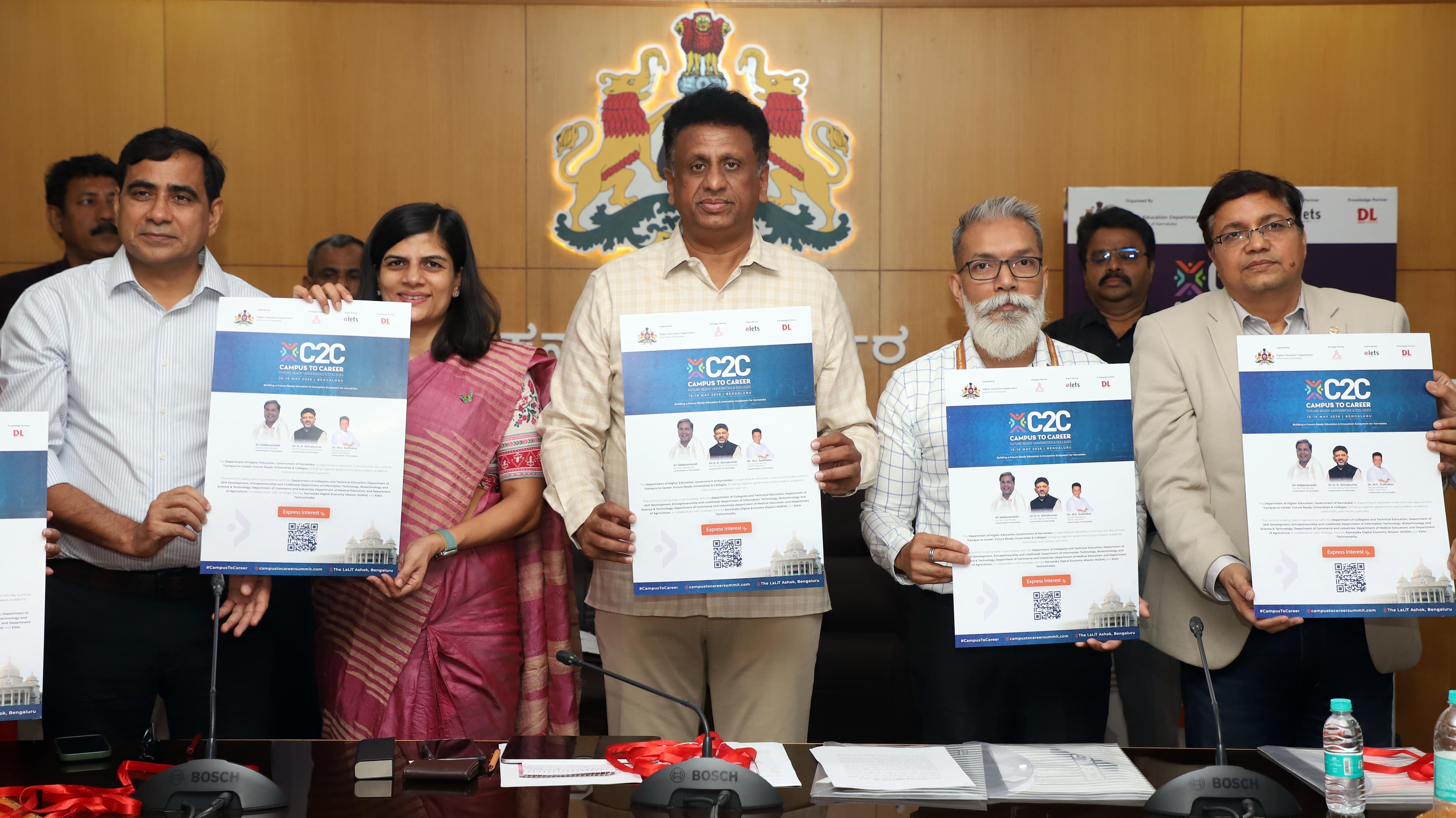 ಉನ್ನತ ಶಿಕ್ಷಣದಲ್ಲಿ ವಿದ್ಯಾರ್ಥಿಗಳಿಗೆ ಹೆಚ್ಚು ಉದ್ಯೋಗಾಧಾರಿತ ಕೌಶಲ ಶಿಕ್ಷಣ ನೀಡುವ ಮೂಲಕ ಶೈಕ್ಷಣಿಕ ವಲಯವನ್ನು ಔದ್ಯೋಗಿಕ ವಲಯದ ಸಮೀಪಕ್ಕೆ ಕೊಂಡೊಯ್ಯುವ ಉದ್ದೇಶದಿಂದ ಮೇ 15, ಮೇ 16 ರಂದು ನಗರದಲ್ಲಿ ‘ಕ್ಯಾಂಪಸ್ ಟು ಕೆರಿಯರ್’ (ಸಿ2ಸಿ) ಎಂಬ ಶೃಂಗ ಸಭೆ ಆಯೋಜಿಸಲಾಗುತ್ತಿದೆ ಎಂದು ಉನ್ನತ ಶಿಕ್ಷಣ ಸಚಿವ ಡಾ.ಎಂ.ಸಿ.ಸುಧಾಕರ್ ತಿಳಿಸಿದರು.ಬುಧವಾರ ವಿಧಾನಸೌಧದಲ್ಲಿ ನಡೆದ ಸುದ್ದಿಗೋಷ್ಠಿಯಲ್ಲಿ ಸಿ2ಸಿ ಶೃಂಗಸಭೆಯ ಲಾಂಛನ ಬಿಡುಗಡೆ ಮಾಡಿ ಮಾತನಾಡಿ, ಖಾಸಗಿ ಹೋಟೆಲ್ನಲ್ಲಿ ನಡೆಯುವ ಶೃಂಗಸಭೆಯಲ್ಲಿ ರಾಜ್ಯದ ಪ್ರಮುಖ ಕೈಗಾರಿಕಾ ಸಂಸ್ಥೆಗಳು, ಶಿಕ್ಷಣ ತಜ್ಞರು ಹಾಗೂ ಸರ್ಕಾರದ ಅಧಿಕಾರಿಗಳು ಒಂದೆಡೆ ಸೇರಿ ರಾಜ್ಯದ ವಿದ್ಯಾರ್ಥಿಗಳಿಗೆ ಹೆಚ್ಚಿನ ಉದ್ಯೋಗಾವಕಾಶ ಸಿಗಲು ಯಾವ ರೀತಿಯ ಕೌಶಲ್ಯ ಶಿಕ್ಷಣ ನೀಡಬೇಕು ಎಂಬ ಕುರಿತು ಸಮಾಲೋಚನೆ ನಡೆಸಿ ಸಲಹೆ ನೀಡಲಿದ್ದಾರೆ. ಇದಕ್ಕೆ ಅನುಗುಣವಾಗಿ ನಮ್ಮ ಪದವೀಧರರನ್ನು ಉದ್ಯಮ ವಲಯದ ಬೇಡಿಕೆಗನುಗುಣವಾಗಿ ತಯಾರಿಸಲು ನೆರವಾಗಲಿದೆ ಎಂದರು.