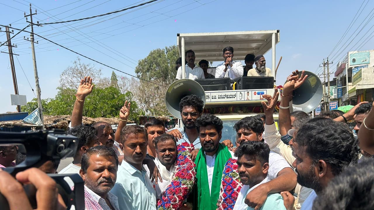 ದಾವಣಗೆರೆ ಲೋಕಸಭೆ ಕ್ಷೇತ್ರದ ಪಕ್ಷೇತರ ಅಭ್ಯರ್ಥಿ ಜಿ.ಬಿ.ವಿನಯಕುಮಾರ ಚನ್ನಗಿರಿ ತಾಲೂಕಿನ ಸಂತೇಬೆನ್ನೂರು ಗ್ರಾಮದಲ್ಲಿ ಮಂಗಳವಾರ ಭರ್ಜರಿ ರೋಡ್ ಶೋ ಮೂಲಕ ಮತಯಾಚಿಸಿದರು.