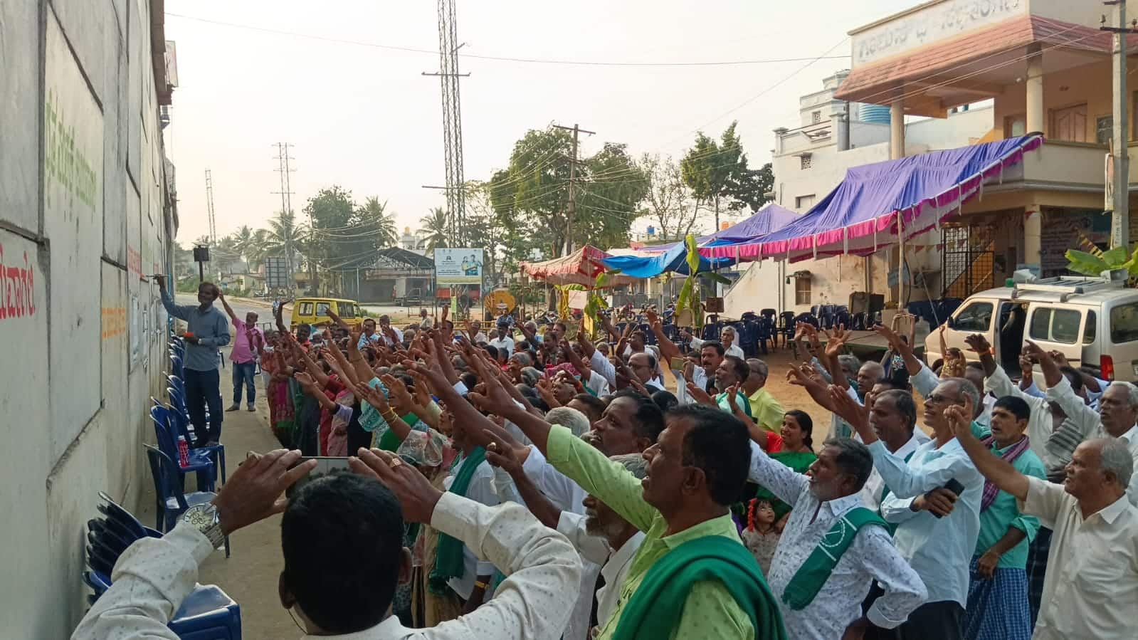 ನಮ್ಮ ಪಂಚಾಯಿತಿ ನಮ್ಮ ಹಕ್ಕು, ನಗರಸಭೆ ವ್ಯಾಪ್ತಿಗೆ ಸೇರ್ಪಡೆ ಬೇಡ, ಪಂಚಾಯಿತಿ ಉಳಿಸಿ ಎಂಬ ಒಕ್ಕೊರಲಿನ ಘೋಷಣೆಯೊಂದಿಗೆ ನಗರಸಭೆ ಸೇರ್ಪಡೆಗೆ ವಿರೋಧಿಸಿದರು. ಪ್ರತಿಭಟನೆಯಲ್ಲಿ ಗ್ರಾಪಂ ಅಧ್ಯಕ್ಷೆ ರಾಧಾ, ಉಪಾಧ್ಯಕ್ಷೆ ದೀಪಿಕಾ, ರೈತ ಮುಖಂಡರಾದ ಜಿ.ಎ.ಶಂಕರ್, ಜಿ.ಎಚ್.ವೀರಪ್ಪ, ಚಂದ್ರಶೇಖರ್, ಜಿ.ಡಿ.ಚಂದ್ರಶೇಖರ್ ಹಾಗೂ ಮಹಿಳಾ ಸಂಘಟನೆಯ ನೂರಾರು ಮಹಿಳೆಯರು ಪಾಲ್ಗೊಂಡಿದ್ದರು.