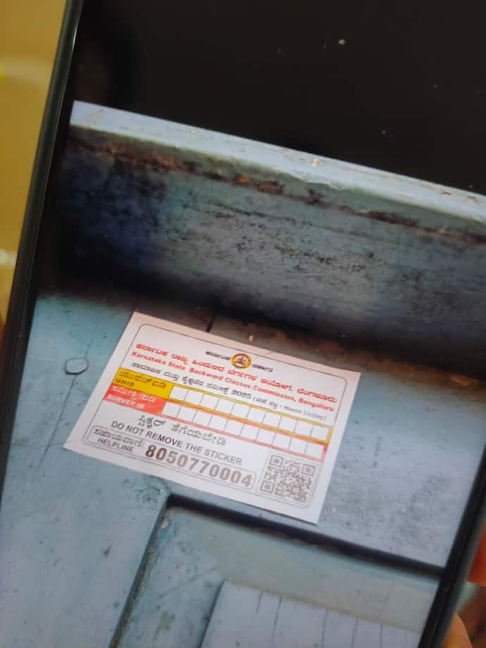 । ಹಿರಿಯ ನಾಗರಿಕ ಸುಂಟಿಕೊಪ್ಪ 2ನೇ ವಿಭಾಗ ಮನೆಗೆ ಬರುವ ಸಮೀಕ್ಷೆದಾರರಿಗೆ ಚೆಸ್ಕಾಂ ಸಿಬ್ಬಂದಿ ಅಂಟಿಸಿದ ಮಾಹಿತಿ ಸಂಖ್ಯೆಯ ಫಲಕ ಇದೆ. ಅದರಲ್ಲಿ ಬರೆದಿರುವ ಸಂಖ್ಯೆ ಕಾಣದಿರುವ, ಅಳಿಸಿ ಹೋಗಿರುವ, ಕೆಲವು ಮಾಹಿತಿ ಸಂಖ್ಯೆ ಬರೆಯಲು ಬಿಟ್ಟು ಹೋಗಿದೆ. ಮತ್ತೆ ಕೆಲವು ಸಂಖ್ಯೆ ಯಾವೊದೋ ಬಡಾವಣೆಗಳಲ್ಲಿ ಕಂಡು ಬಂದಿದೆ. ಇದು ಸಂಬಂಧಿಸಿದವರ ಬೇಜವಾಬ್ಧಾರಿ ಮತ್ತು ಕರ್ತವ್ಯ ನಿರ್ಲಕ್ಷ್ಯತೆಯನ್ನು ತೋರಿಸಿದೆ.। ಹೆಸರು ಹೇಳಲು ಇಚ್ಛಿಸದ ಹಿರಿಯ ನಾಗರಿಕ ಕೊಡಗರಹಳ್ಳಿ