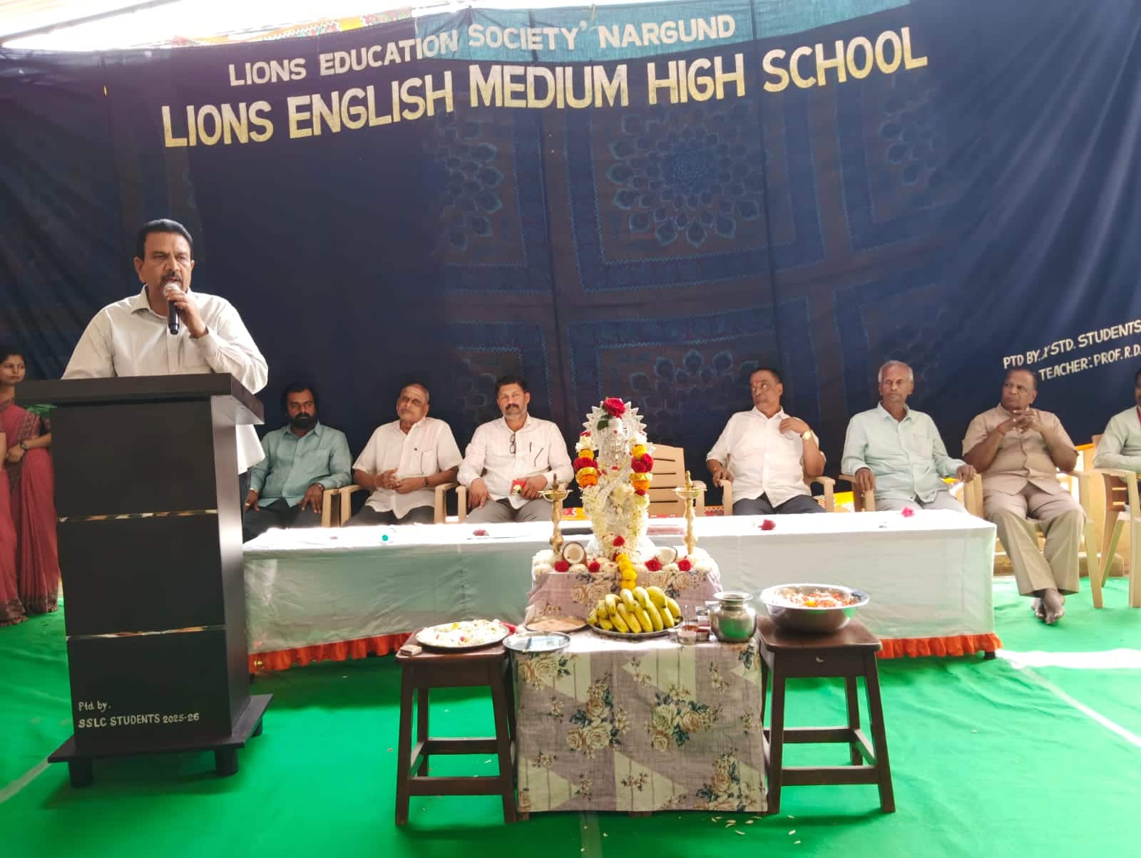 ಲಯನ್ಸ್ ಶಾಲೆಯಲ್ಲಿ ಕಲಿತ ವಿದ್ಯಾರ್ಥಿಗಳು ಉನ್ನತ ಗುರಿ ಸಾಧಿಸಿದ್ದಾರೆ. ಅದೇ ನಿಟ್ಟಿನಲ್ಲಿ ವಿದ್ಯಾರ್ಥಿಗಳು ಉನ್ನತ ಗುರಿ ಸಾಧಿಸಿ ಸಮಾಜದಲ್ಲಿ ಉತ್ತಮ ವ್ಯಕ್ತಿಗಳಾಗಿ ರೂಪುಗೊಳ್ಳಬೇಕು. ಉತ್ತಮ ನಾಗರಿಕರಾಗಿ ಕಲಿತ ಸಂಸ್ದೆಗೆ, ಹೆತ್ತ ತಂದೆ- ತಾಯಿಗಳಿಗೆ ಹಾಗೂ ಬೋಧಿಸಿದ ಗುರುಗಳಿಗೆ ಕೀರ್ತಿ ತರಬೇಕು. ರಾಜ್ಯ ಹಾಗೂ ಜಿಲ್ಲಾ ಮಟ್ಟದಲ್ಲಿ ಪ್ರಥಮ ರ್ಯಾಂಕ್ ಪಡೆದ ವಿದ್ಯಾರ್ಥಿಗಳಿಗೆ ₹10 ಸಾವಿರ ಬಹುಮಾನ ನೀಡುವುದಾಗಿ ಘೋಷಿಸಿದರು.ಕಾರ್ಯದರ್ಶಿ ಡಾ. ಪ್ರಭು ನಂದಿ ಮಾತನಾಡಿ, 10ನೇ ತರಗತಿ ಜೀವನದಲ್ಲಿ ಪ್ರಮುಖ ಪಾತ್ರ ವಹಿಸುತ್ತದೆ. ವಿದ್ಯಾರ್ಥಿಗಳು ಉತ್ತಮ ಗುಣಗಳನ್ನು ಬೆಳೆಸಬೇಕು. ಜೀವನದಲ್ಲಿ ಮೂರು ನಿಯಮ ಪಾಲಿಸಬೇಕು. ಶಿಸ್ತು, ತಾಳ್ಮೆ ಹೊಂದಿ ಸಮಯದ ಸದುಪಯೋಗ ಮಾಡಿಕೊಳ್ಳಬೇಕು. ವಿದ್ಯಾರ್ಥಿಗಳು ನಿರಂತರ ಶ್ರಮ ವಹಿಸಿ ಉತ್ತಮ ಅಂಕ ಪಡೆದ ಸಂಸ್ಥೆಯ ಕೀರ್ತಿ ಹೆಚ್ಚಿಸಬೇಕೆಂದರು.ಈ ಸಂದರ್ಭದಲ್ಲಿ ಮಹಾ ಸರಸ್ವತಿ ಪೂಜೆಗೆ ಶಾಸಕ ಸಿ.ಸಿ. ಪಾಟೀಲ ಚಾಲನೆ ನೀಡಿದರು. ವಿದ್ಯಾರ್ಥಿಗಳಿಗೆ ಸಂಸ್ಥೆಯಿಂದ ನೆನಪಿನ ಕಾಣಿಕೆ ವಿತರಿಸಲಾಯಿತು. ಇದೇ ಸಂದರ್ಭದಲ್ಲಿ ಭಾನುಪ್ರಿಯ ಪುರೋಹಿತ, ಪ್ರಿತಂ ಪಟ್ಟಣಶೆಟ್ಟಿ, ಕವನಾ ಪಿಡ್ಡನಾಯ್ಕರ, ಸಹನಾ ಗೊಂಬಿ ಅನಿಸಿಕೆಗಳನ್ನು ವ್ಯಕ್ತಪಡಿಸಿದರು.ಸಮಾರಂಭದಲ್ಲಿ ಜಂಟಿ ಕಾರ್ಯದರ್ಶಿ ವಿಜಯಕುಮಾರ್ ಬೇಲೇರಿ, ಹಿರಿಯ ನಿರ್ದೇಶಕರಾದ ಜಿ.ಟಿ. ಗುಡಿಸಾಗರ, ಜಿ.ಬಿ. ಕುಲಕರ್ಣಿ, ಡಾ. ಬಿ.ಎಂ. ಜಾಬಣ್ಣವರ, ಪ್ರೊ. ಸಿ.ಎಸ್. ಸಾಲೂಟಗಿಮಠ ಇದ್ದರು. ಮುಖ್ಯೋಪಾಧ್ಯಾಯ ಜಿ.ಬಿ. ಹಿರೇಮಠ ಸ್ವಾಗತಿಸಿದರು. ಡಾ. ಬಸವರಾಜ ಹಲಕುರ್ಕಿ, ವಿಭಾ ರಾಮದುರ್ಗ ನಿರೂಪಿಸಿದರು. ಮುಖ್ಯೋಪಾಧ್ಯಾಯ ಎಸ್.ಜಿ. ಜಕ್ಕಲಿ ವಂದಿಸಿದರು.