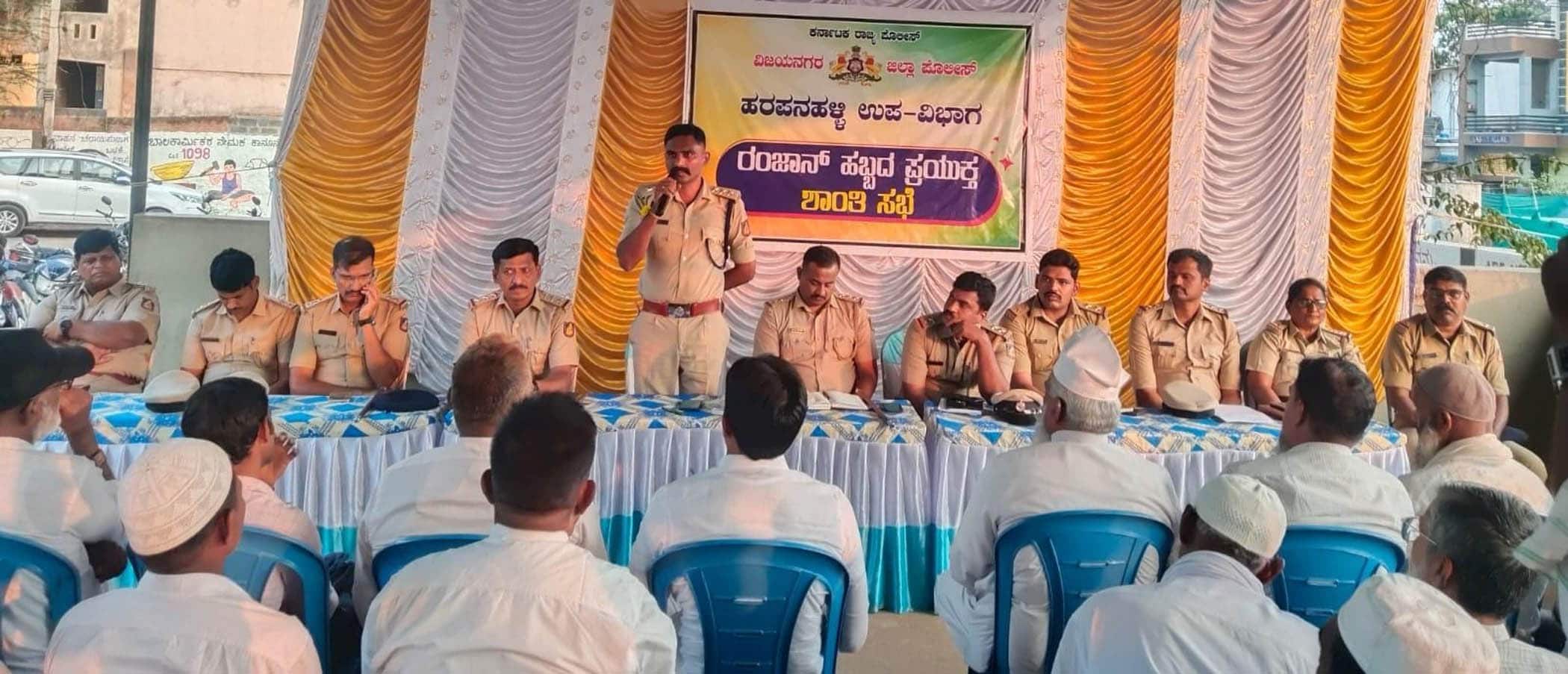 ಹೂವಿನಹಡಗಲಿ ಸಿಪಿಐ ಮಲ್ಲು ಹೂಗಾರ, ಹರಪನಹಳ್ಳಿ, ಅರಸೀಕೆರೆ, ಹಲುವಾಗಲು, ಚಿಗಟೇರಿ ಹಡಗಲಿ, ಹಿರೇಹಡಗಲಿ, ಇಟಿಗಿ ಠಾಣೆಯ ಪಿಎಸ್ಐಗಳು ಮುಸ್ಲಿಂ ಸಮಾಜದ ಮುಖಂಡರು ಸಭೆಯಲ್ಲಿ ಪಾಲ್ಗೊಂಡಿದ್ದರು.