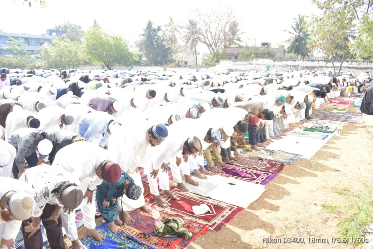 ಪ್ರಾರ್ಥನೆಯ ನಂತರ ಮುಸ್ಲಿಂ ಬಾಂಧವರು ಪರಸ್ಪರ ಒಬ್ಬರಿಗೊಬ್ಬರು ಶುಭಾಶಯ ವಿನಿಮಯ ಮಾಡಿಕೊಂಡರು.