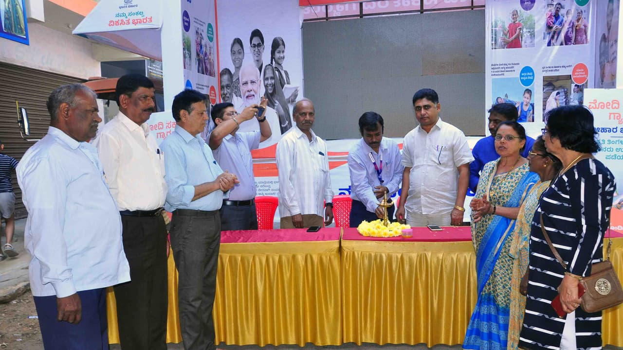 ವಿಕಸಿತ ಭಾರತ ಸಂಕಲ್ಪ ರಥಯಾತ್ರೆಯು ರಾಜ್ಯಾದ್ಯಂತ ಸಂಚಾರ ಮಾಡುತ್ತಿದ್ದು, ಯಾತ್ರೆಯು ಭಾನುವಾರ ನಗರಕ್ಕೆ ಬಂದಾಗ ಹೊಸಲೈನ್ ರಸ್ತೆಯ ಉತ್ತರ ಬಡಾವಣೆ ಬಳಿ ಹಮ್ಮಿಕೊಳ್ಳಲಾಗಿದ್ದ ಕಾರ್ಯಕ್ರಮವನ್ನು ಎಸ್ಬಿಐ ಬ್ಯಾಂಕ್ ವ್ಯವಸ್ಥಾಪಕ ಆನಂದ್ ಉದ್ಘಾಟಿಸಿದರು.ನಂತರ ಮಾತನಾಡಿದ ಅವರು, ನರೇಂದ್ರ ಮೋದಿ ಅವರ ಕೇಂದ್ರ ಸರ್ಕಾರ, ದೇಶದ ಬಡಜನರಿಗೆ, ರೈತರಿಗೆ ಅನೇಕ ಕಾರ್ಯಕ್ರಮಗಳನ್ನು ಜಾರಿ ಮಾಡಿದೆ. ನಮ್ಮ ಬ್ಯಾಂಕಿನಲ್ಲಿ ಹಲವಾರು ಯೋಜನೆಗಳಿವೆ. ಅದರಲ್ಲಿ ಬೀದಿ ಬದಿ ವ್ಯಾಪಾರಿಗಳಿಗೆಂದು ಪ್ರಧಾನಿಯವರು ಪ್ರಧಾನ ಮಂತ್ರಿ ಸ್ವನಿಧಿ ಯೋಜನೆ. ಸಣ್ಣ ವ್ಯವಹಾರವಾದರೂ ಕನಿಷ್ಠ ೧೦ ಸಾವಿರ ರು.ದಿಂದಲೂ ಲೋನ್ ಕೊಡಲಾಗುತ್ತಿದೆ. ಪ್ರಧಾನ ಮಂತ್ರಿ ಸುರಕ್ಷಾ ಭೀಮಾ ಯೋಜನೆ ವಿಮೆ ಕೂಡ ಇದ್ದು, ವರ್ಷಕ್ಕೆ ಕೇವಲ ೨೦ ರು. ಕಟ್ಟಿದರೆ ಸಾಕು. ವಿಮಾದಾರರು ಅಪಘಾತದಲ್ಲಿ ಮರಣ ಹೊಂದಿದರೆ ೨ ಲಕ್ಷ ರು. ಕುಟುಂಬಕ್ಕೆ ತಲುಪುತ್ತದೆ ಎಂದರು.